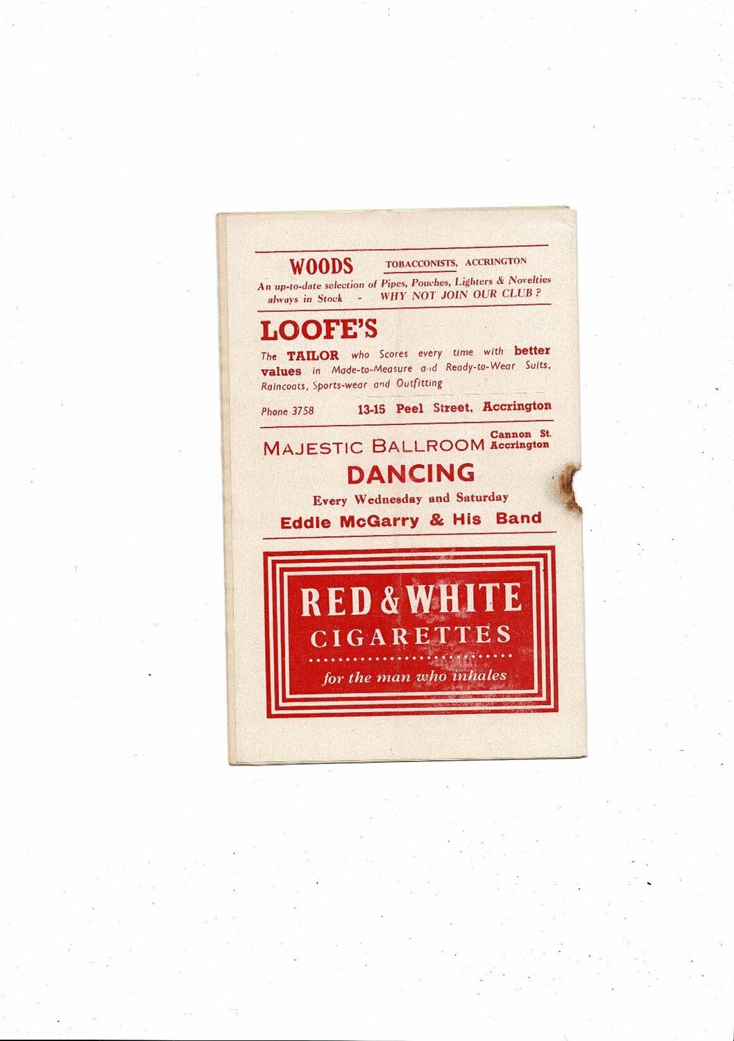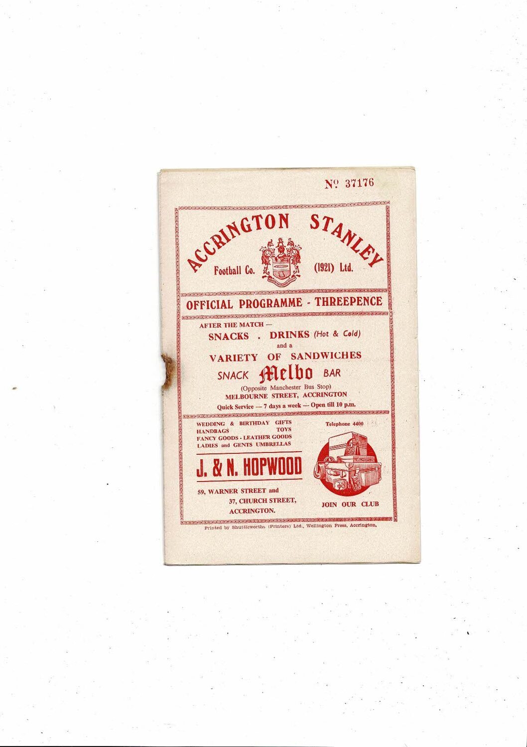 This original Football Programme is creased also has a fold with some staining, hole from missing rusty staple & several tiny nic's on front cover. No handwriting