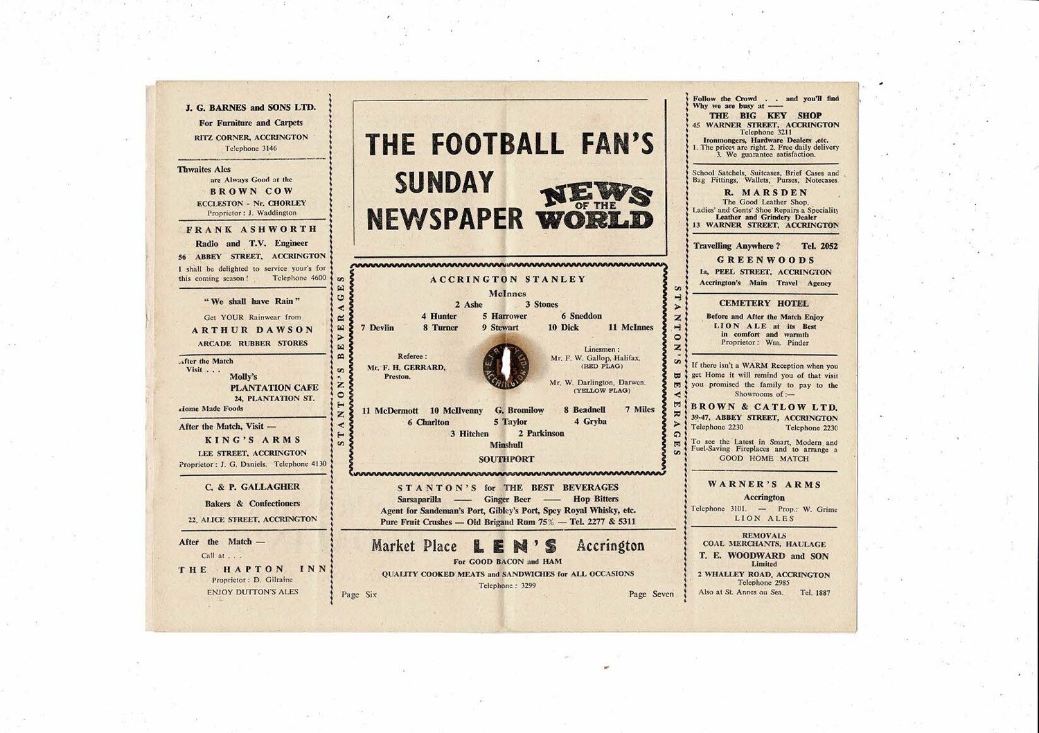 1955/56 Accrington Stanley v Southport Football Programme