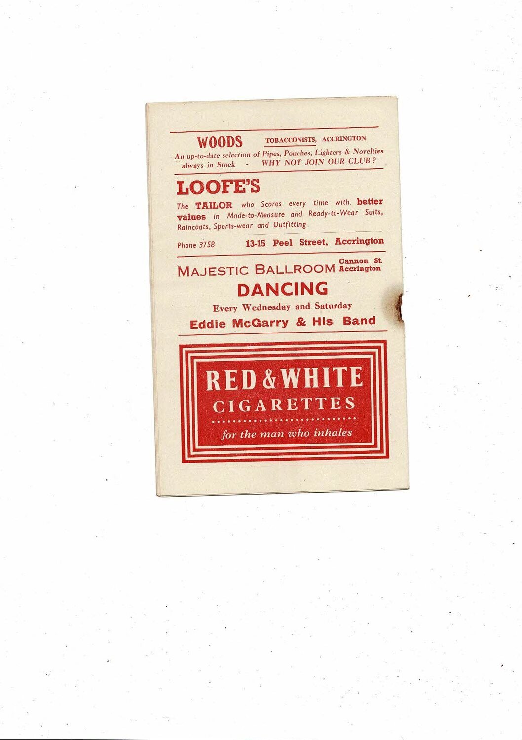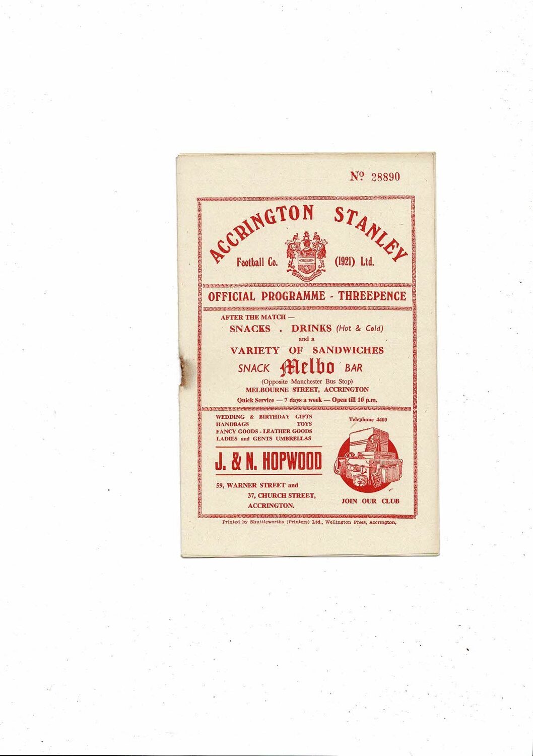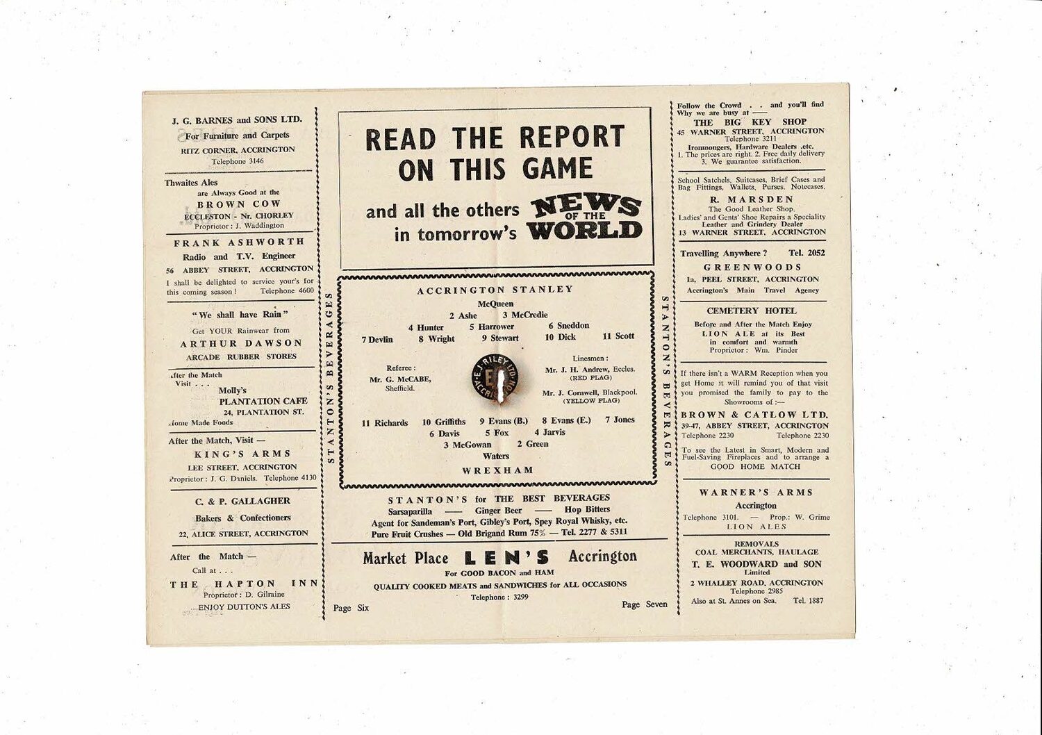 1955/56 Accrington Stanley v Wrexham Football Programme