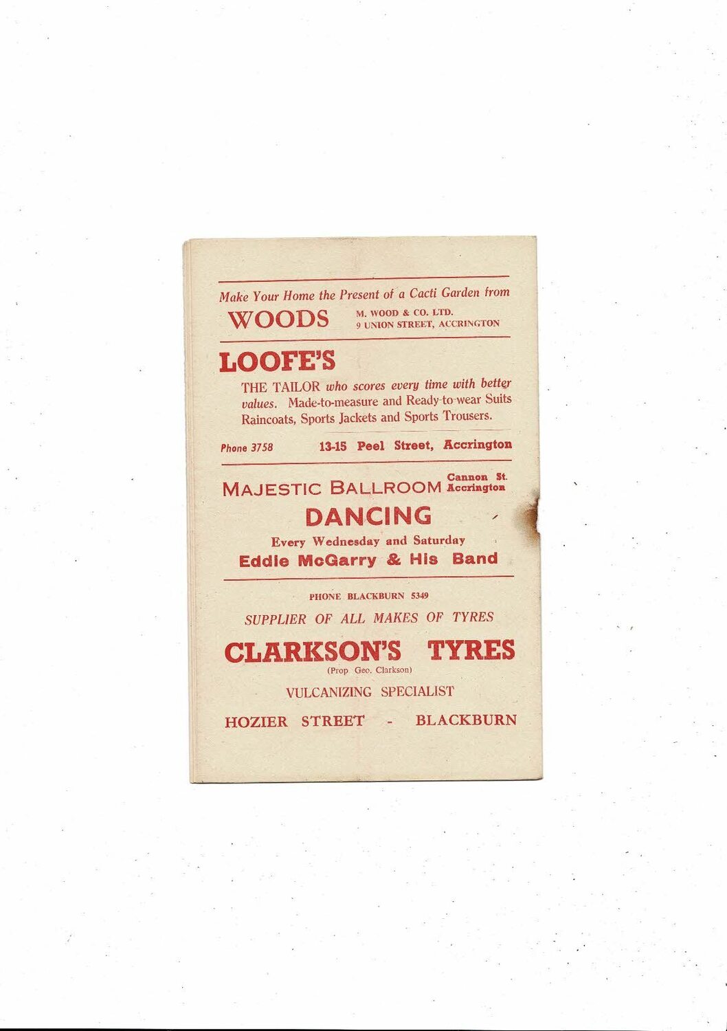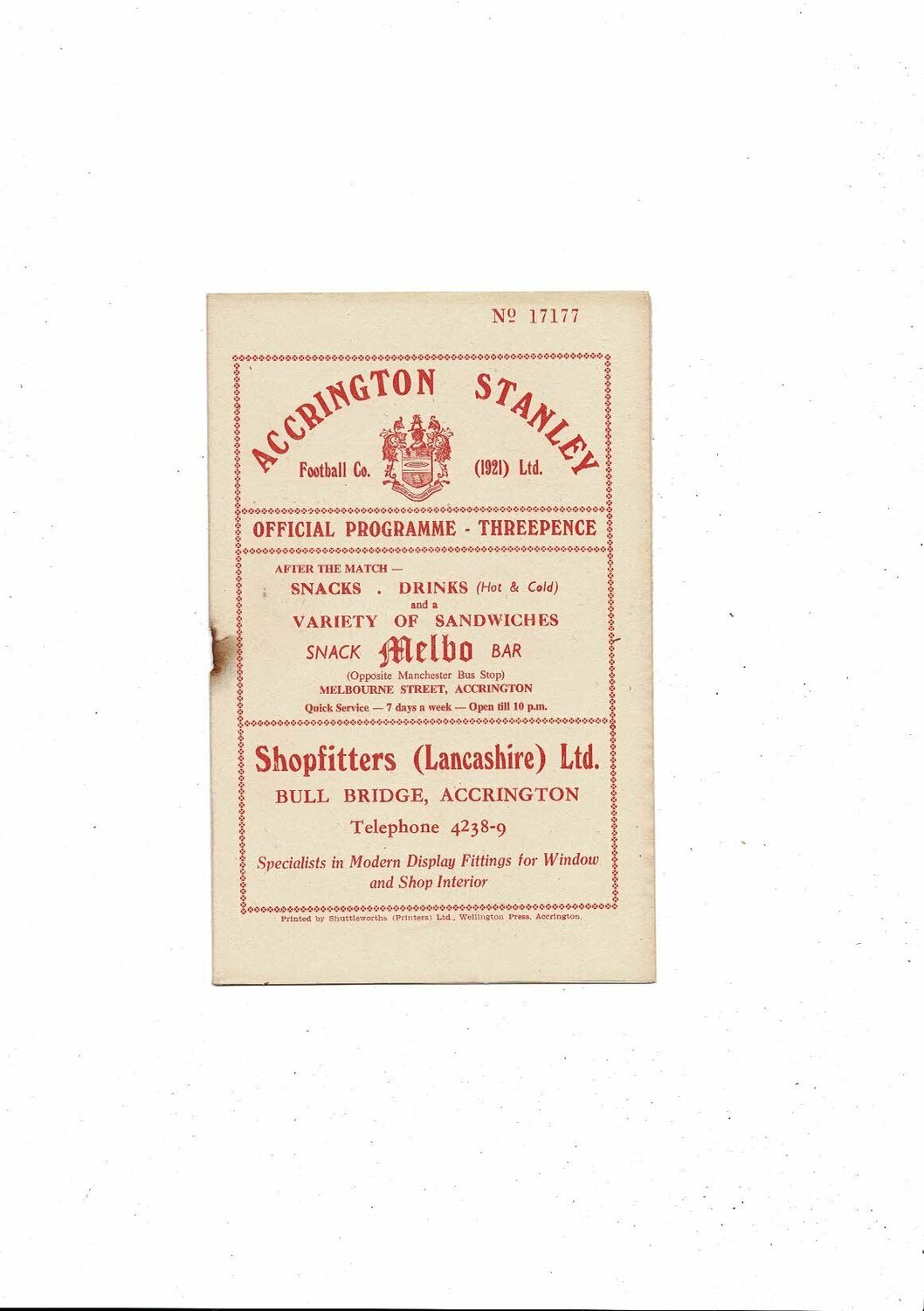 This original Football Programme is creased also has a fold with some staining & hole from missing rusty staple. No handwriting