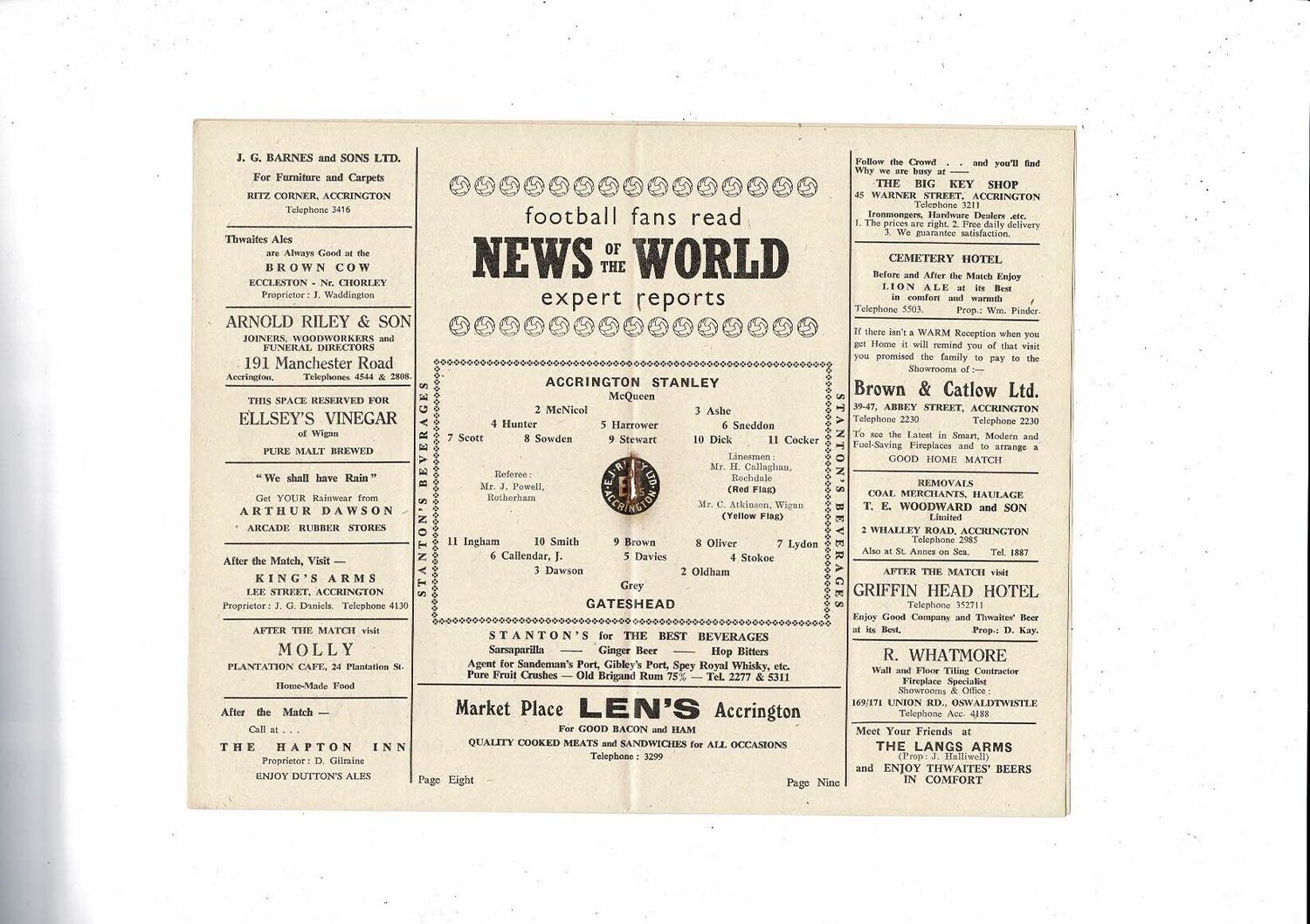 1956/57 Accrington Stanley v Gateshead Football Programme