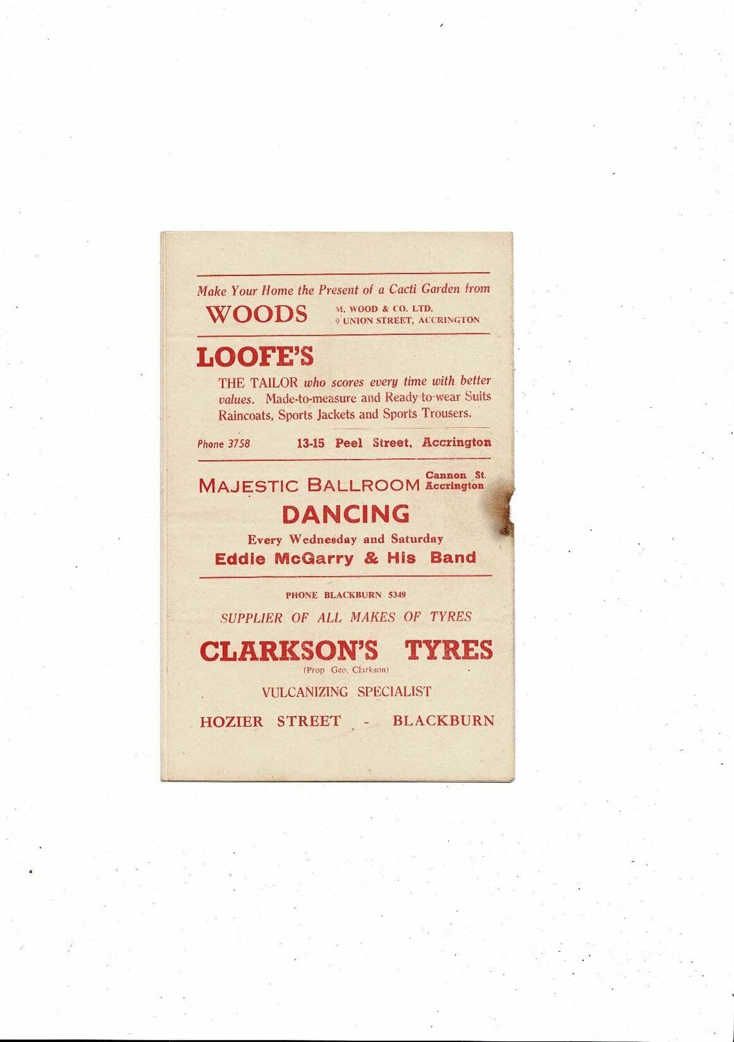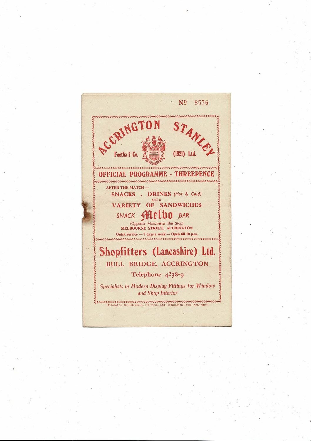 This original Football Programme is creased also has a fold with some staining, hole from missing rusty staple & one team change