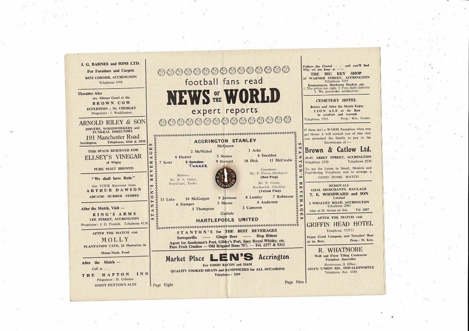 1956/57 Accrington Stanley v Hartlepool United Football Programme
