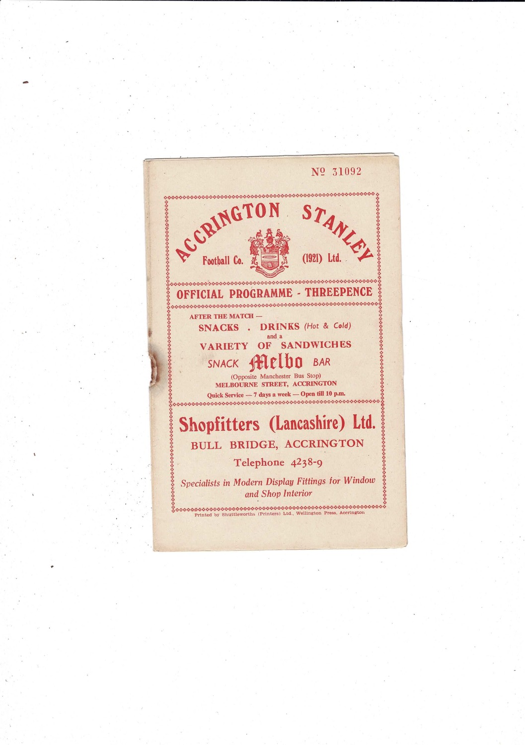 1956/57 Accrington Stanley v Stockport County Football Programme
