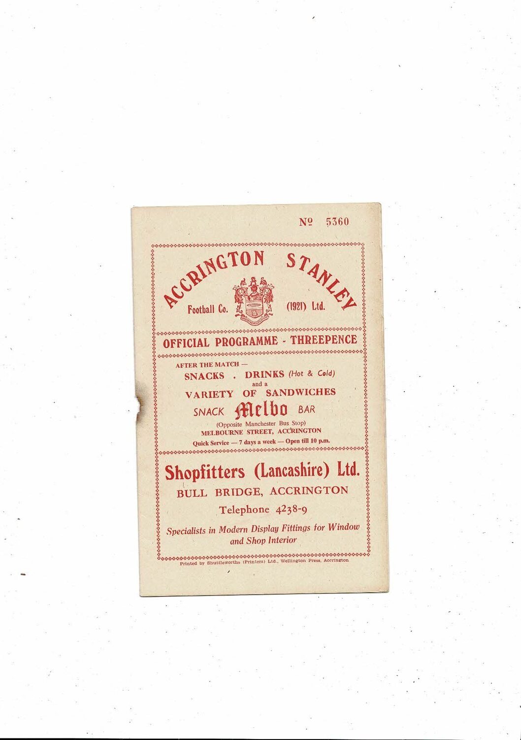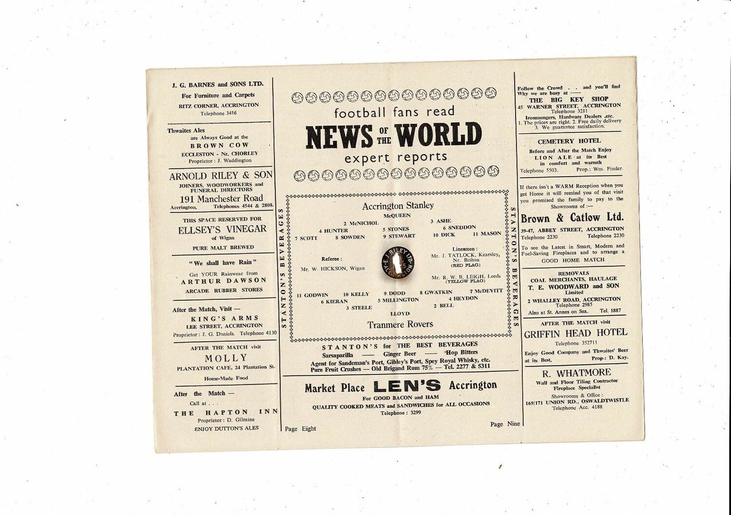 1956/57 Accrington Stanley v Tranmere Rovers Football Programme