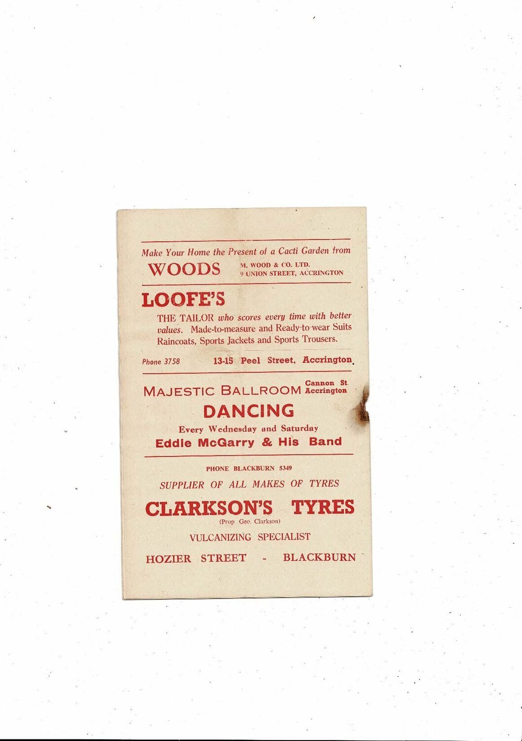 This original Football Programme is creased also has a fold with some staining & hole from missing from rusty staple. No handwriting
