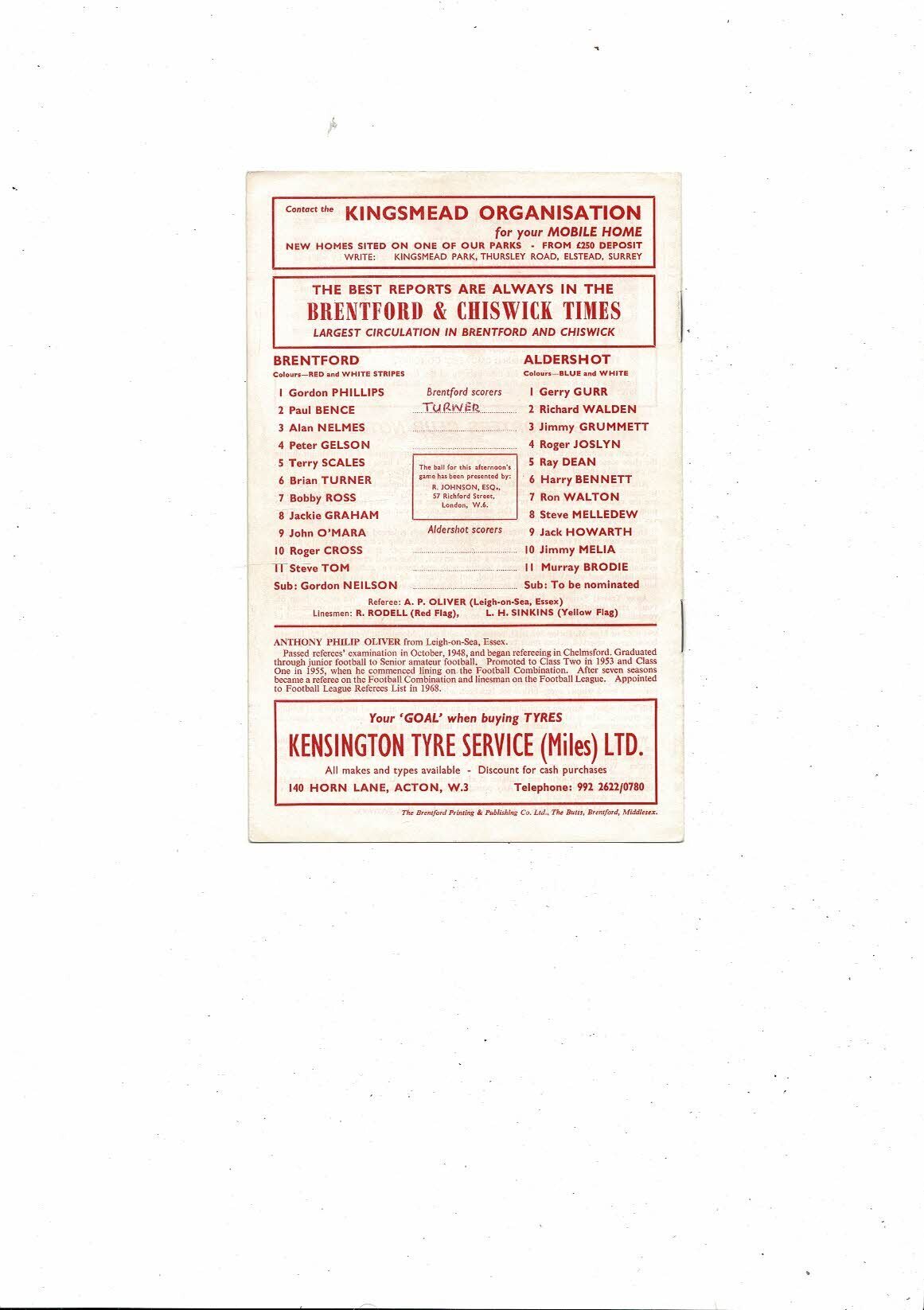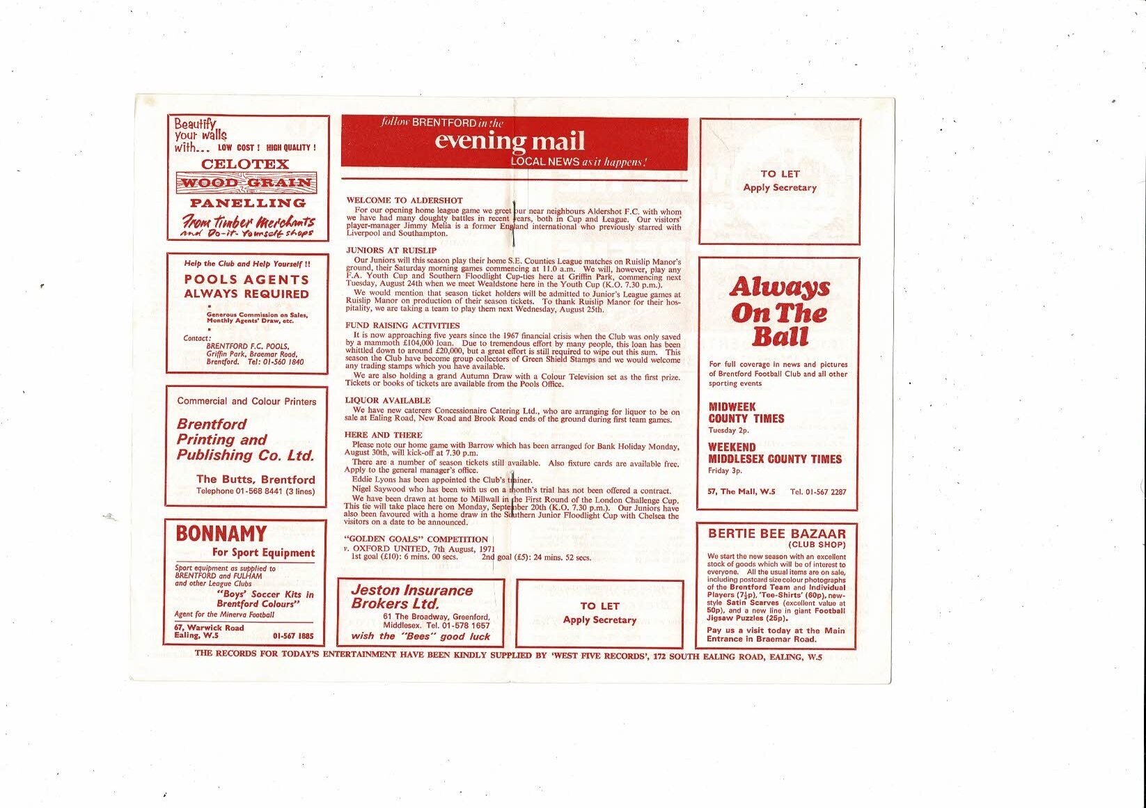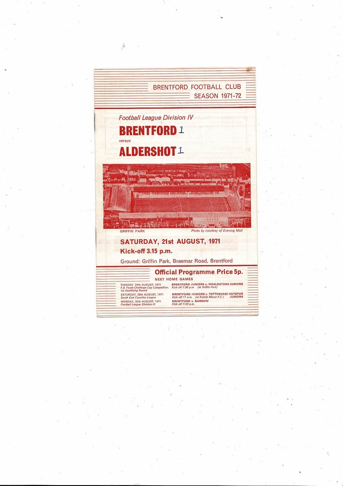 1971/72 Brentford v Aldershot Football Programme