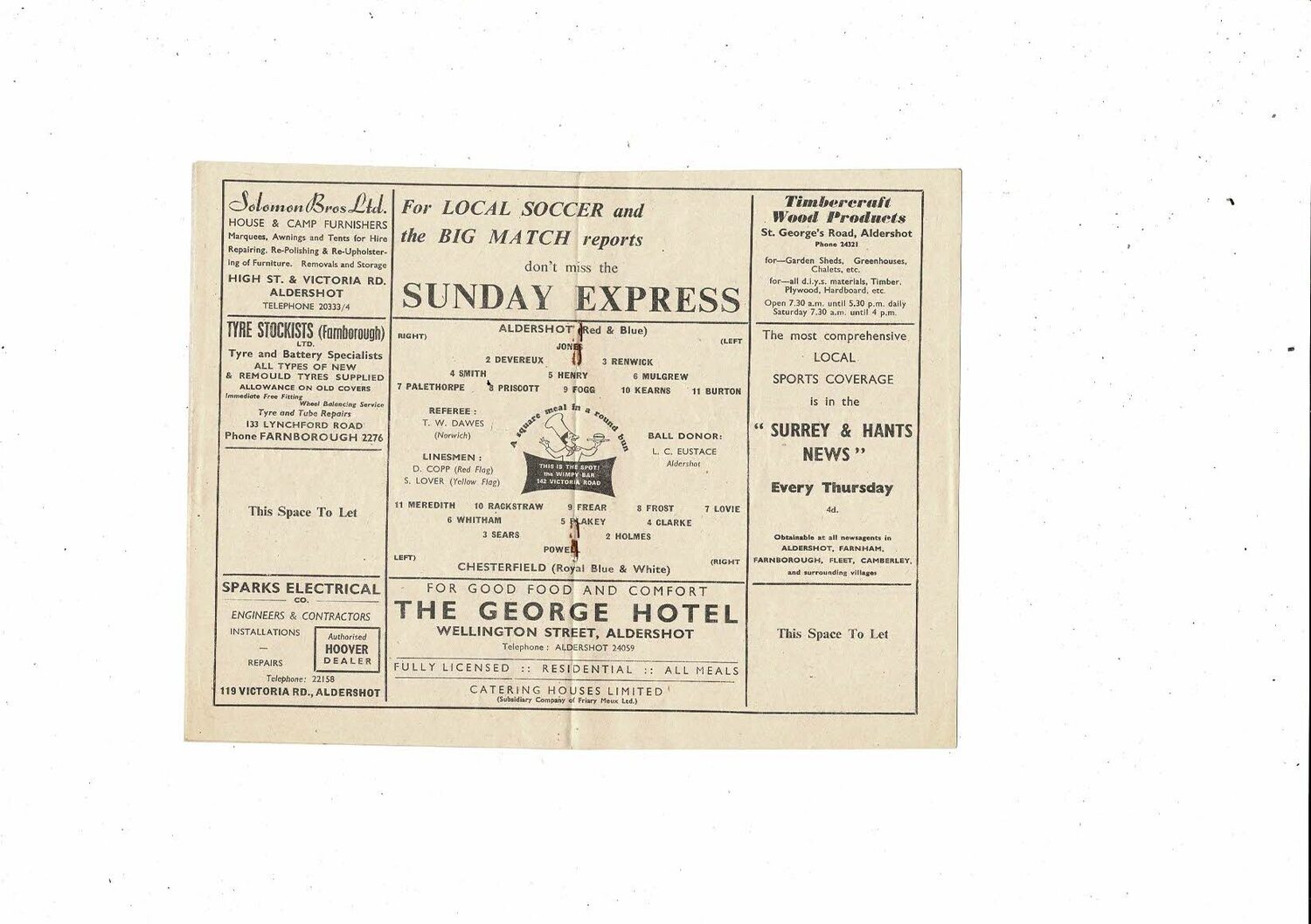 1963/64 Aldershot v Chesterfield Football Programme