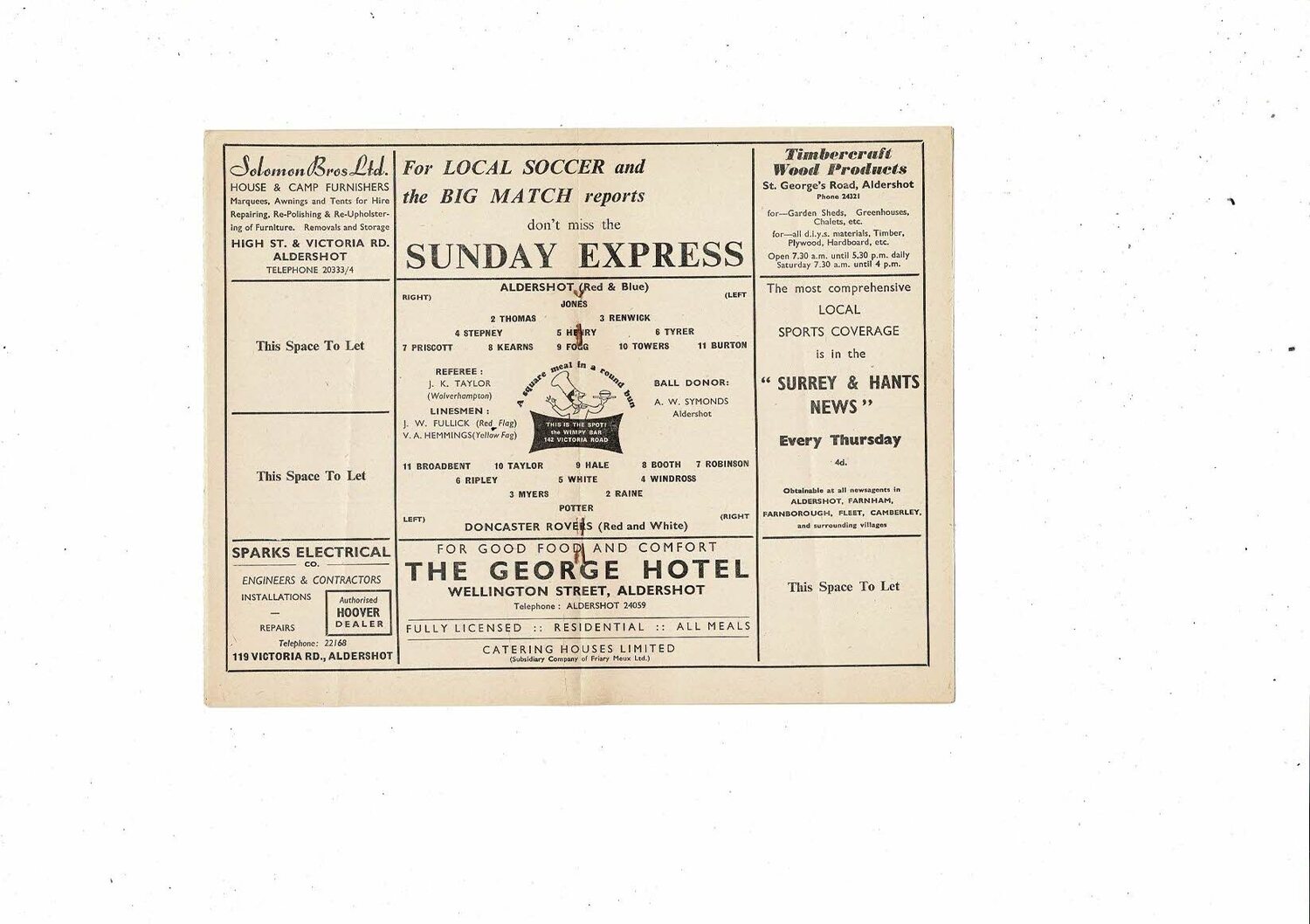 1963/64 Aldershot v Doncaster Rovers Football Programme