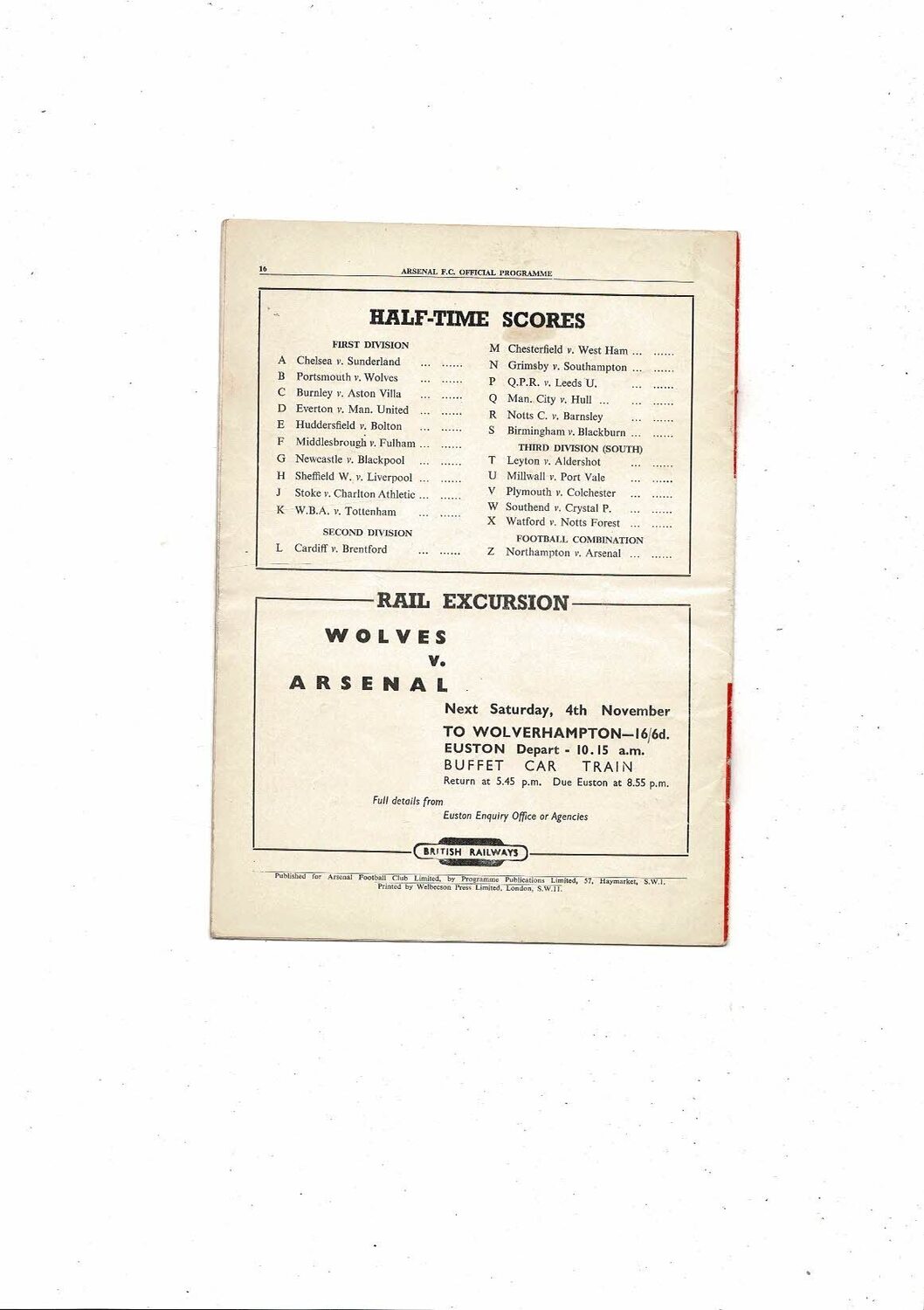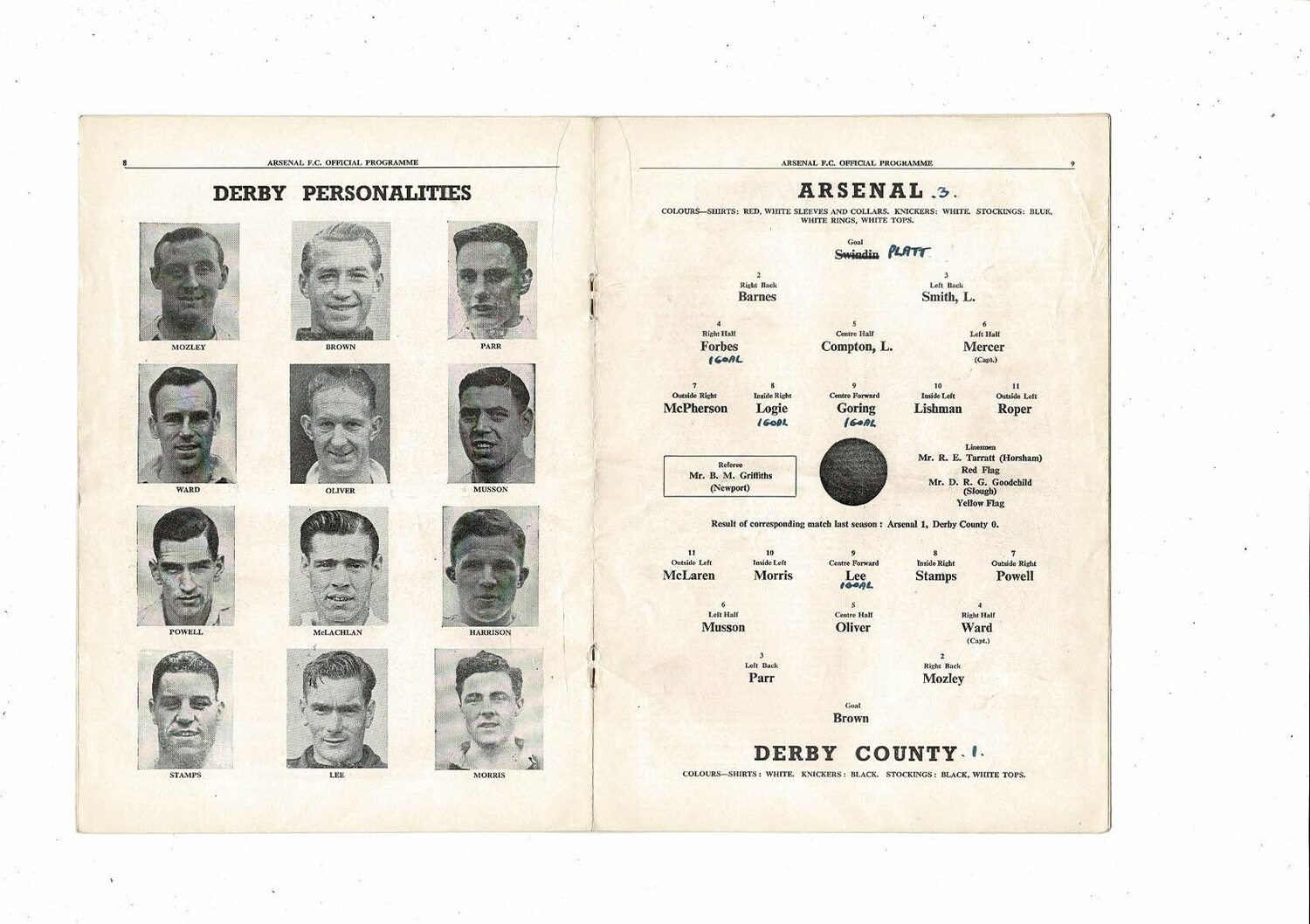 1950/51 Arsenal v Derby County Football Programme