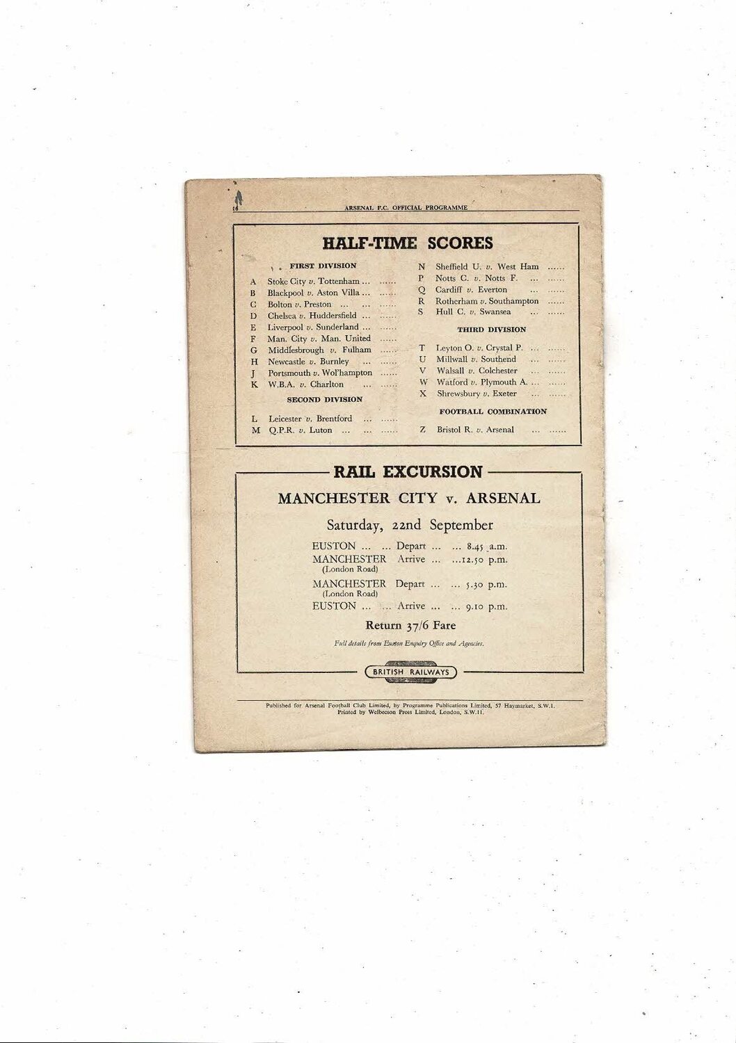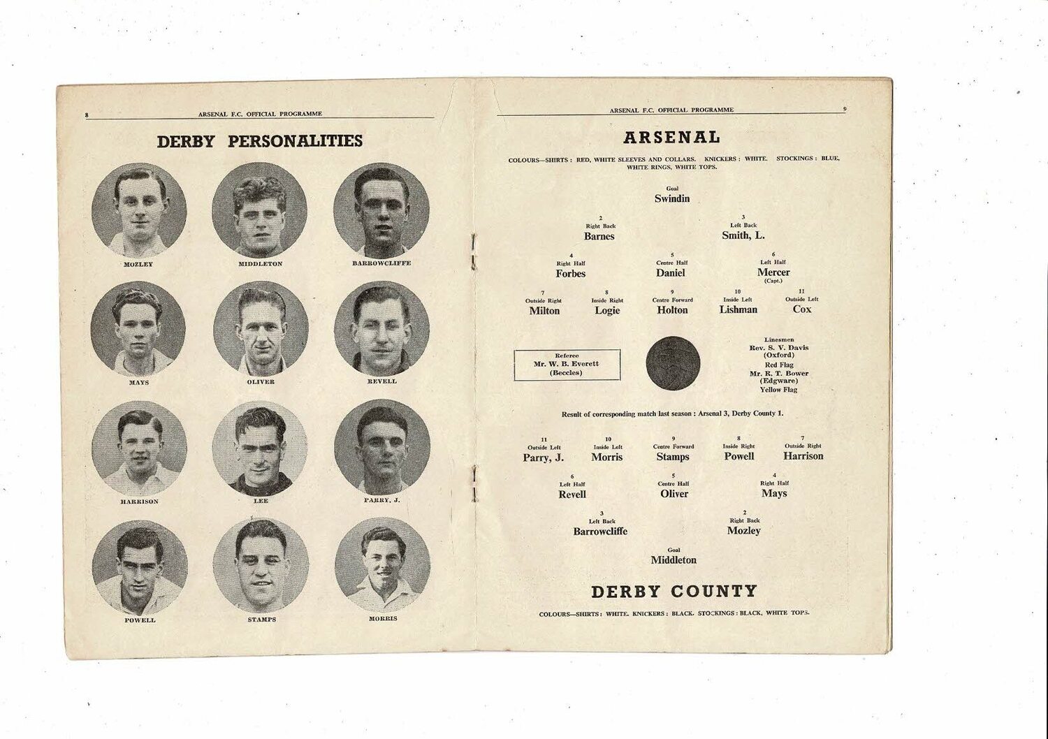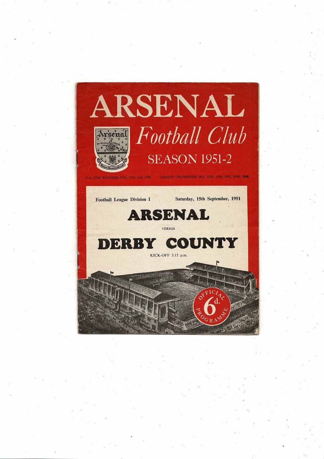 1951/52 Arsenal v Derby County Football Programme