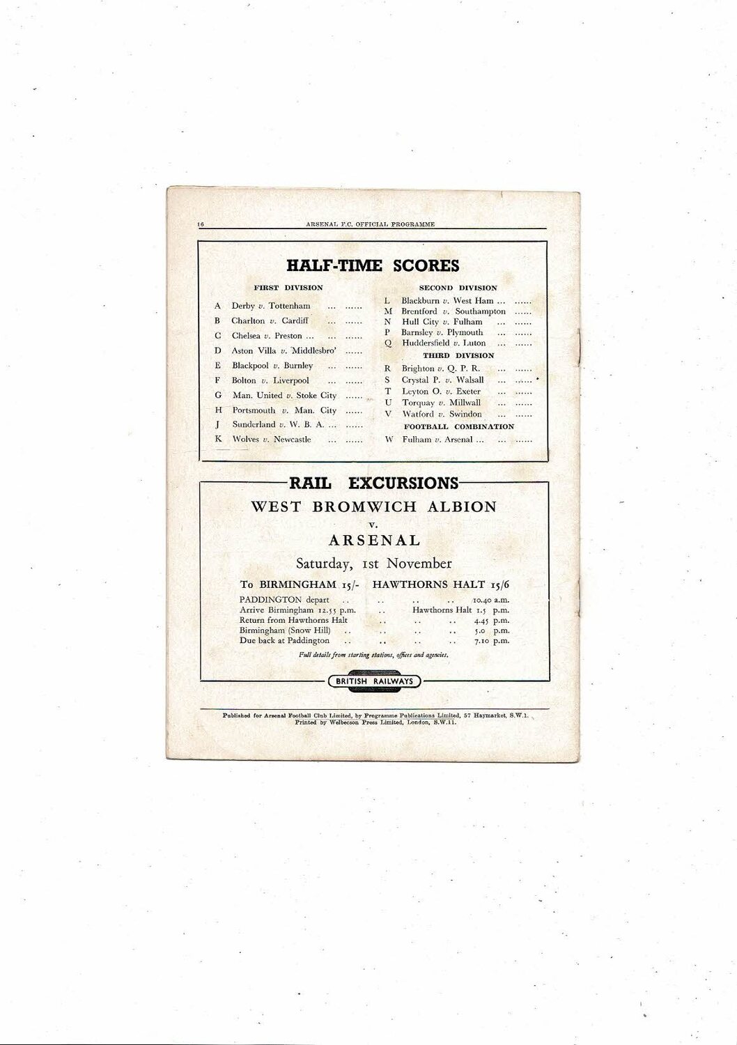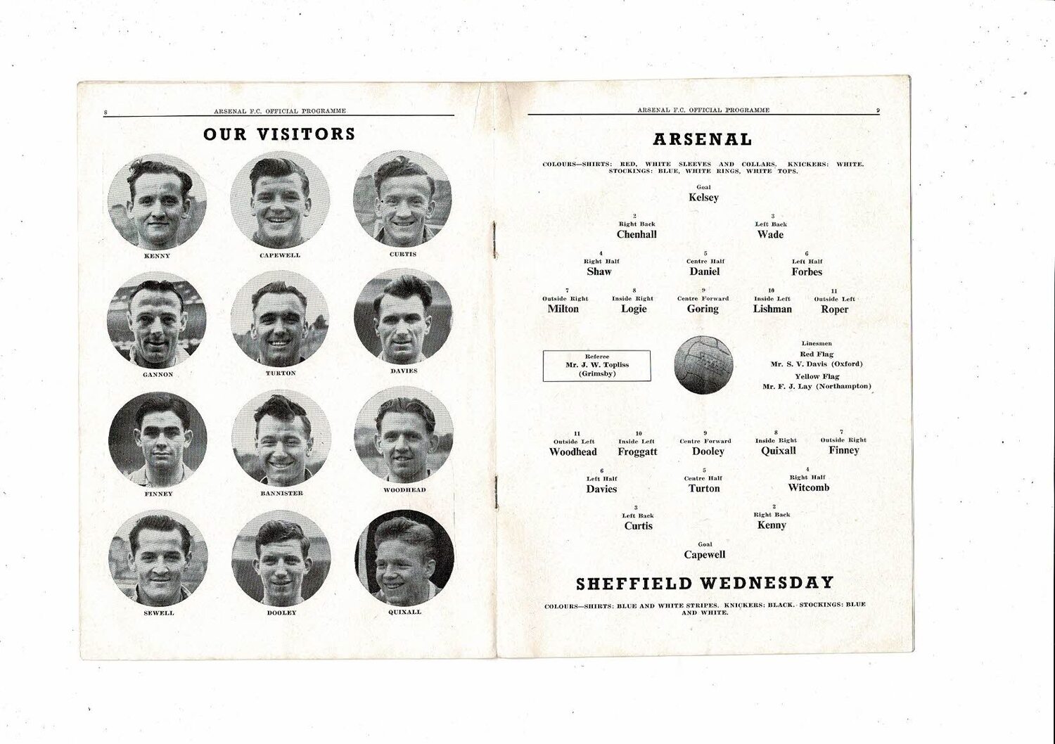 1952/53 Arsenal v Sheffield Wednesday Football Programme