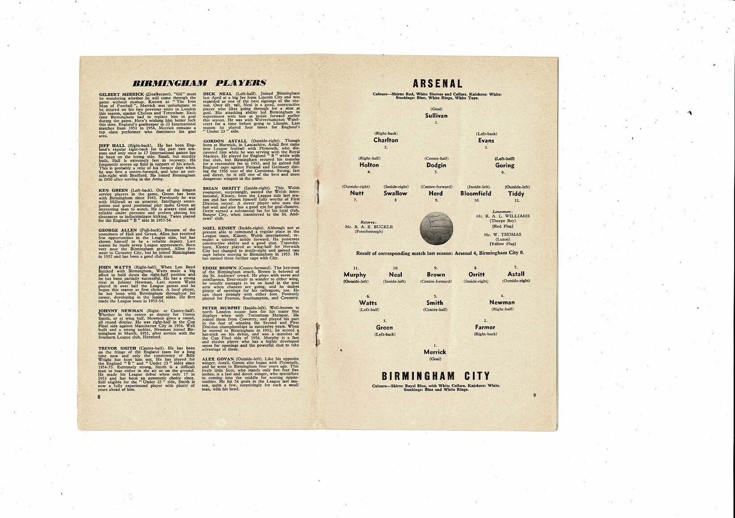1957/58 Arsenal v Birmingham City Football Programme