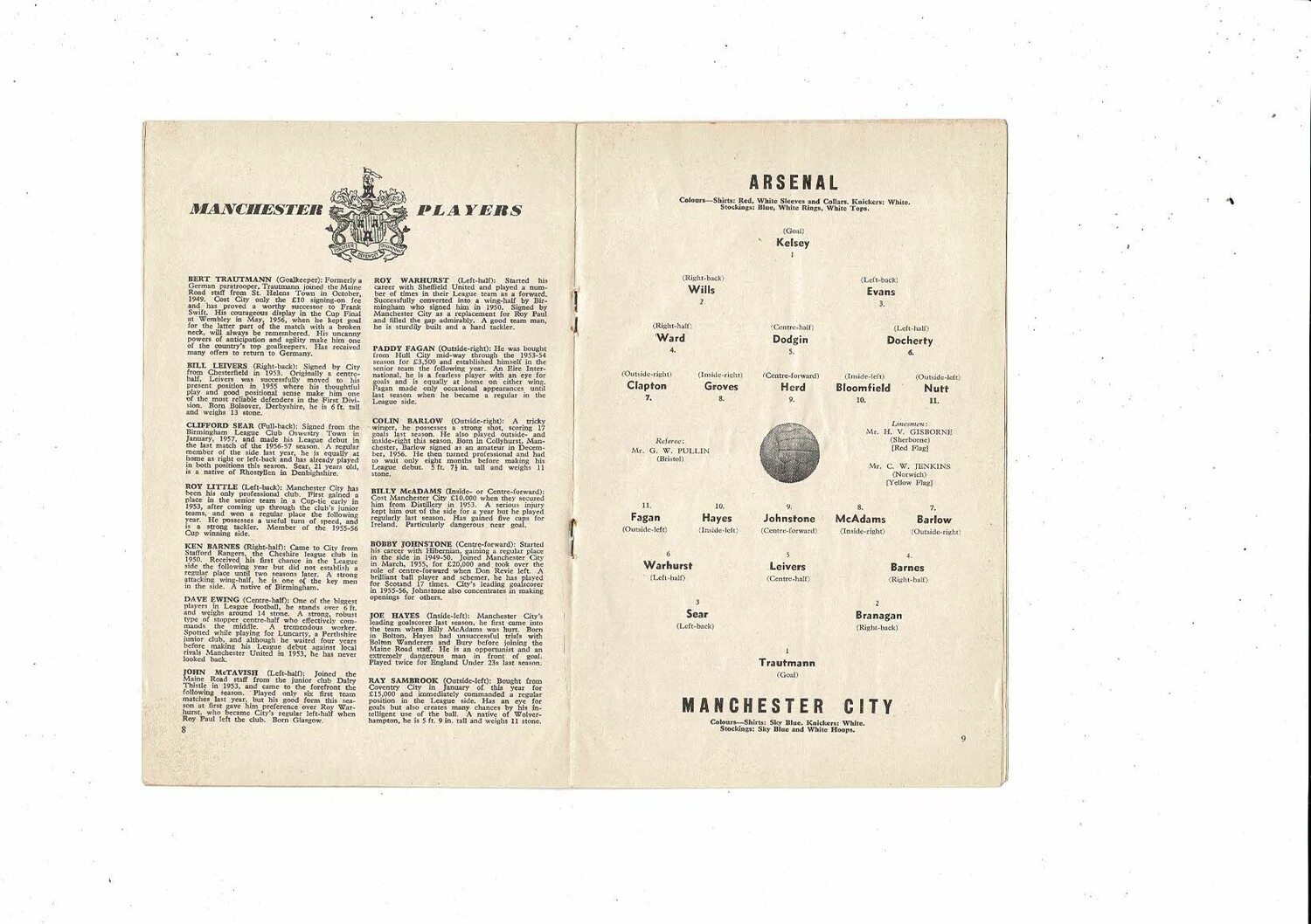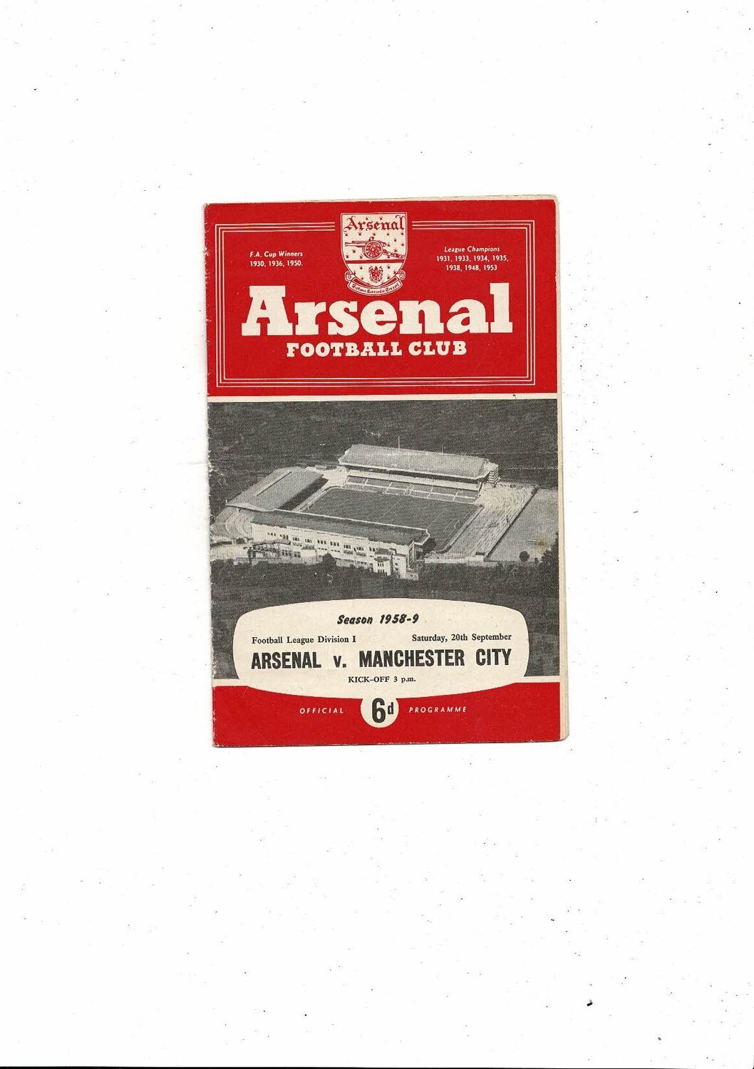 1958/59 Arsenal v Manchester City Football Programme