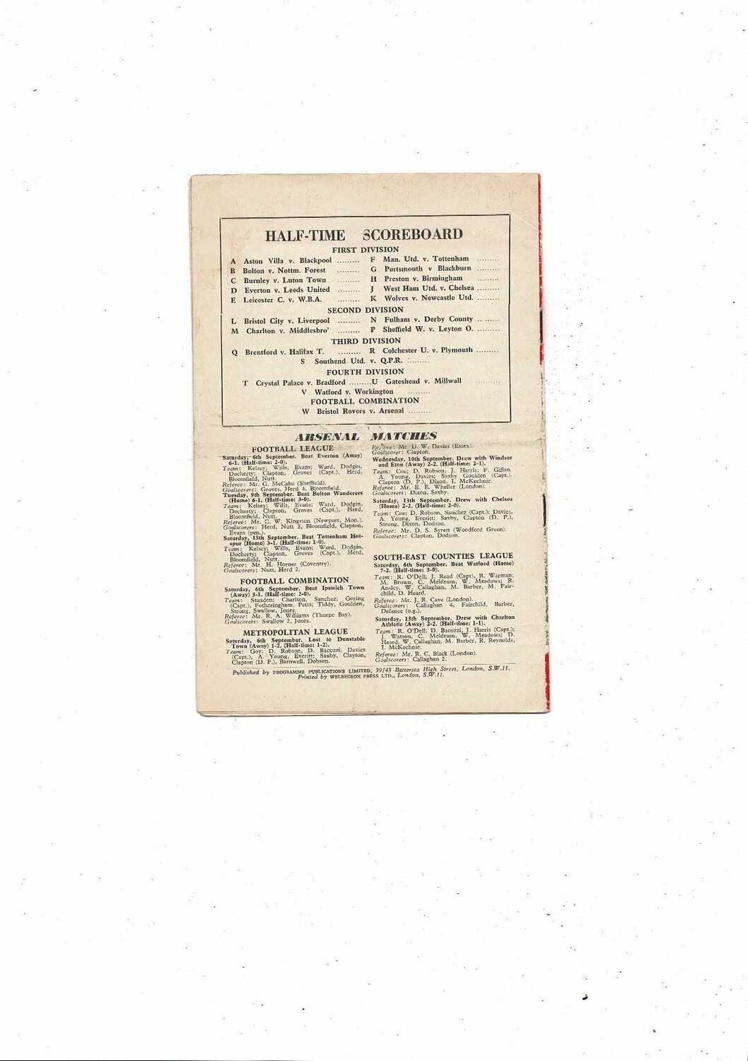 This Original Football Programme is creased & folded with some staining, small tear on spine & staples just starting to rust. No handwriting. Please see scans