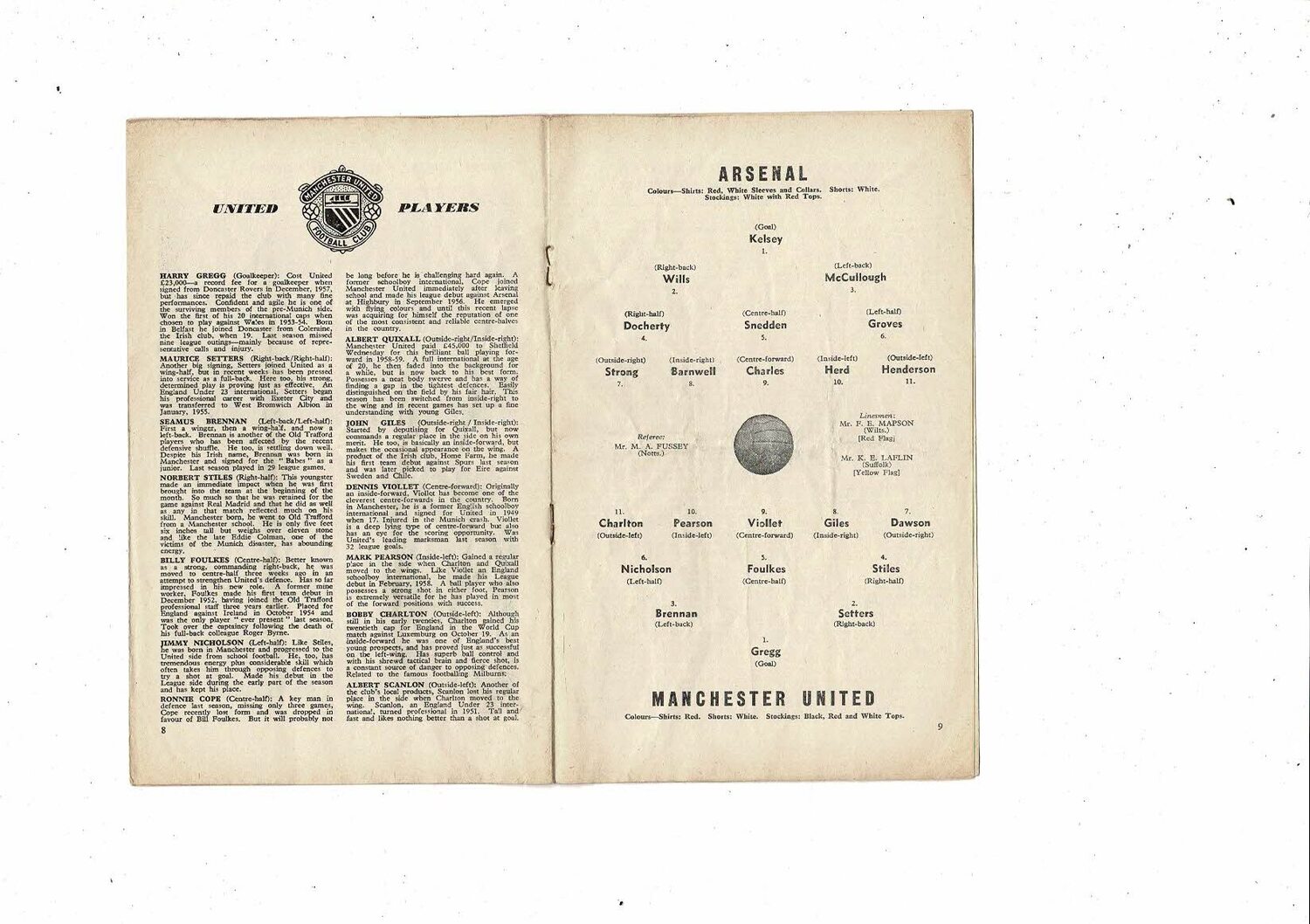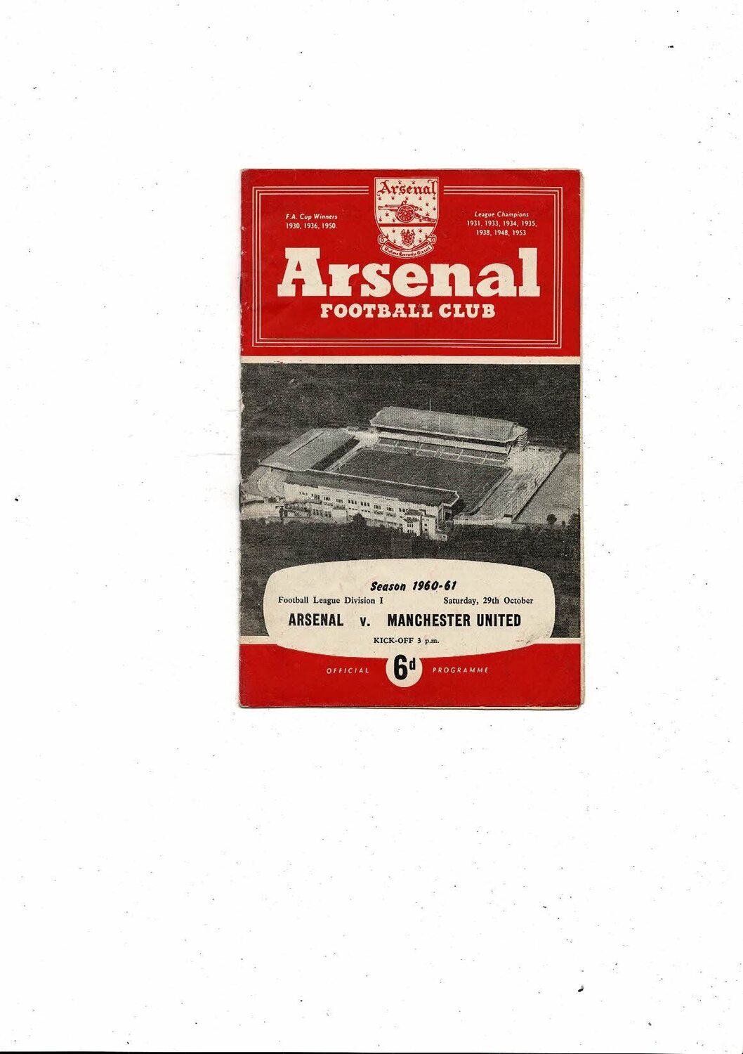 1960/61 Arsenal v Manchester United Football Programme