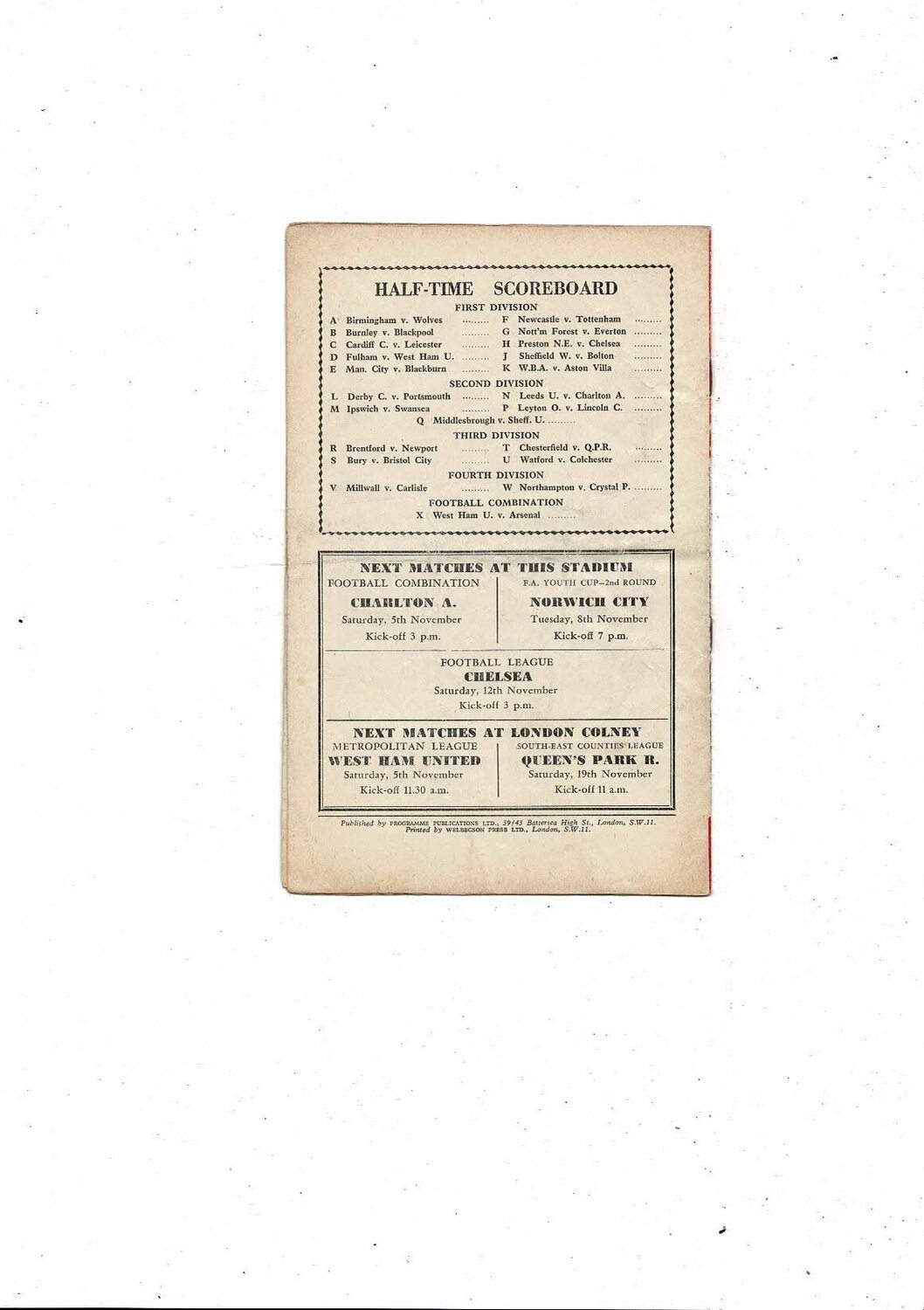 This original Football programme is creased also has a fold with some staining & several tiny nic's. No handwriting. Please see scans