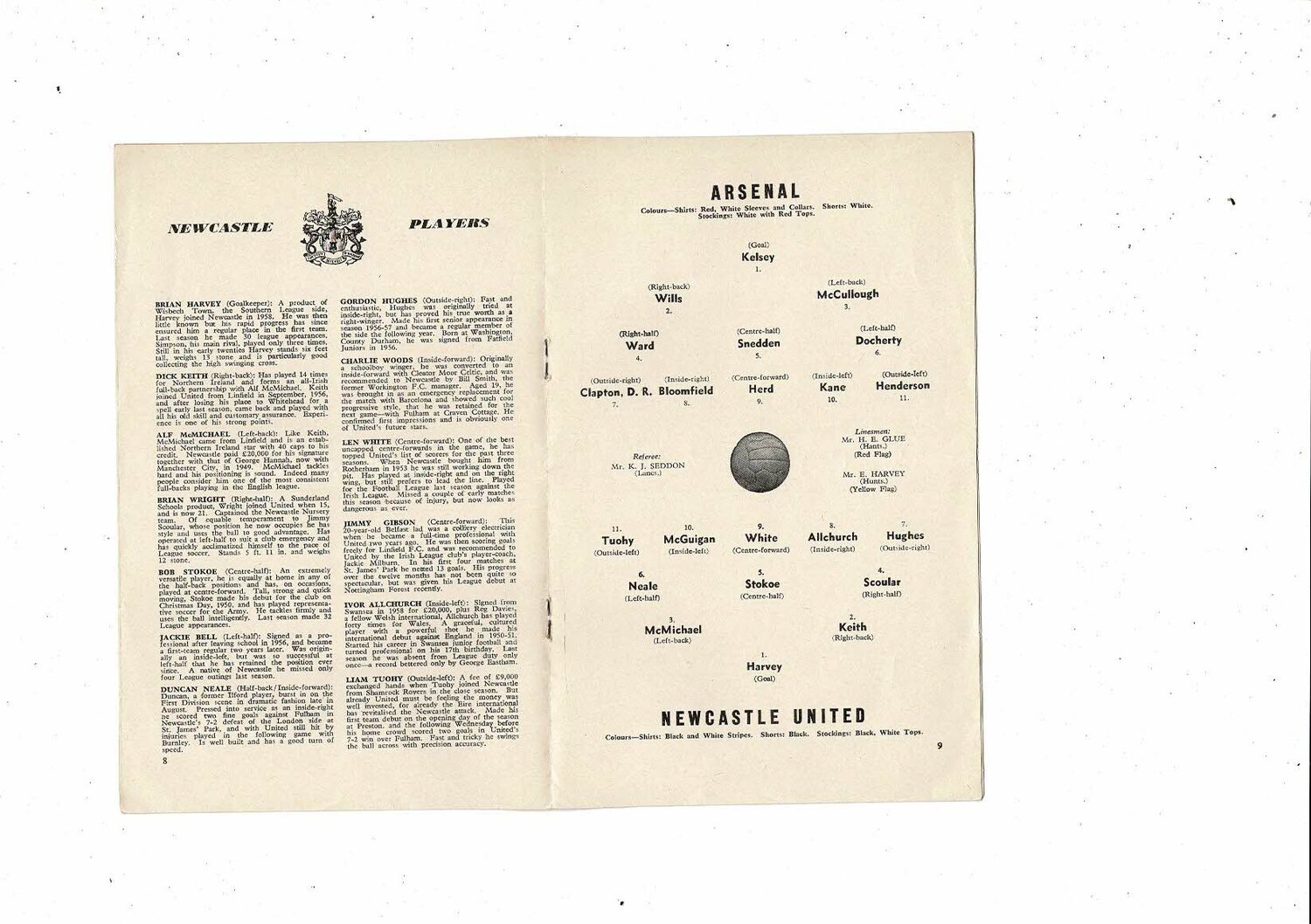 1960/61 Arsenal v Newcastle United Football Programme