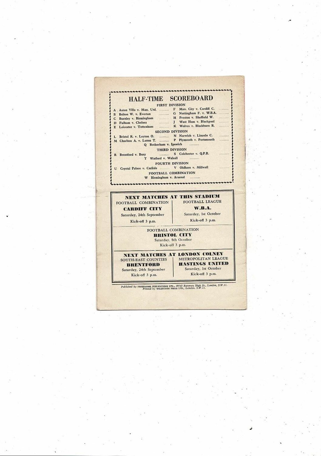 This original Football Programme is creased also has a fold with tiny nic at both end of spine & number on front in pencil. Please see scans.