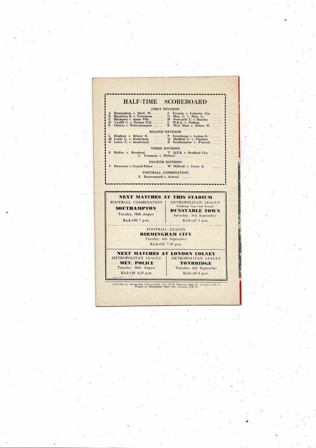This original Football Programme is creased also has a fold. No handwriting. Please see scans
