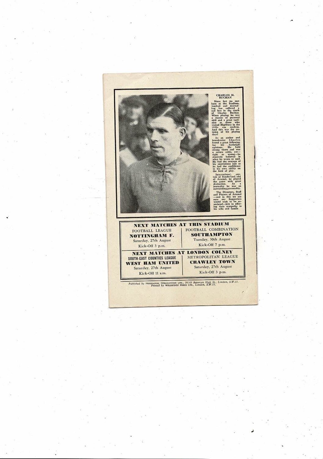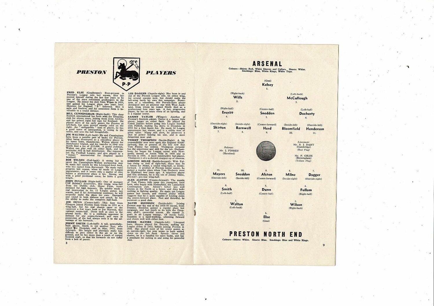 1960/61 Arsenal v Preston Football Programme