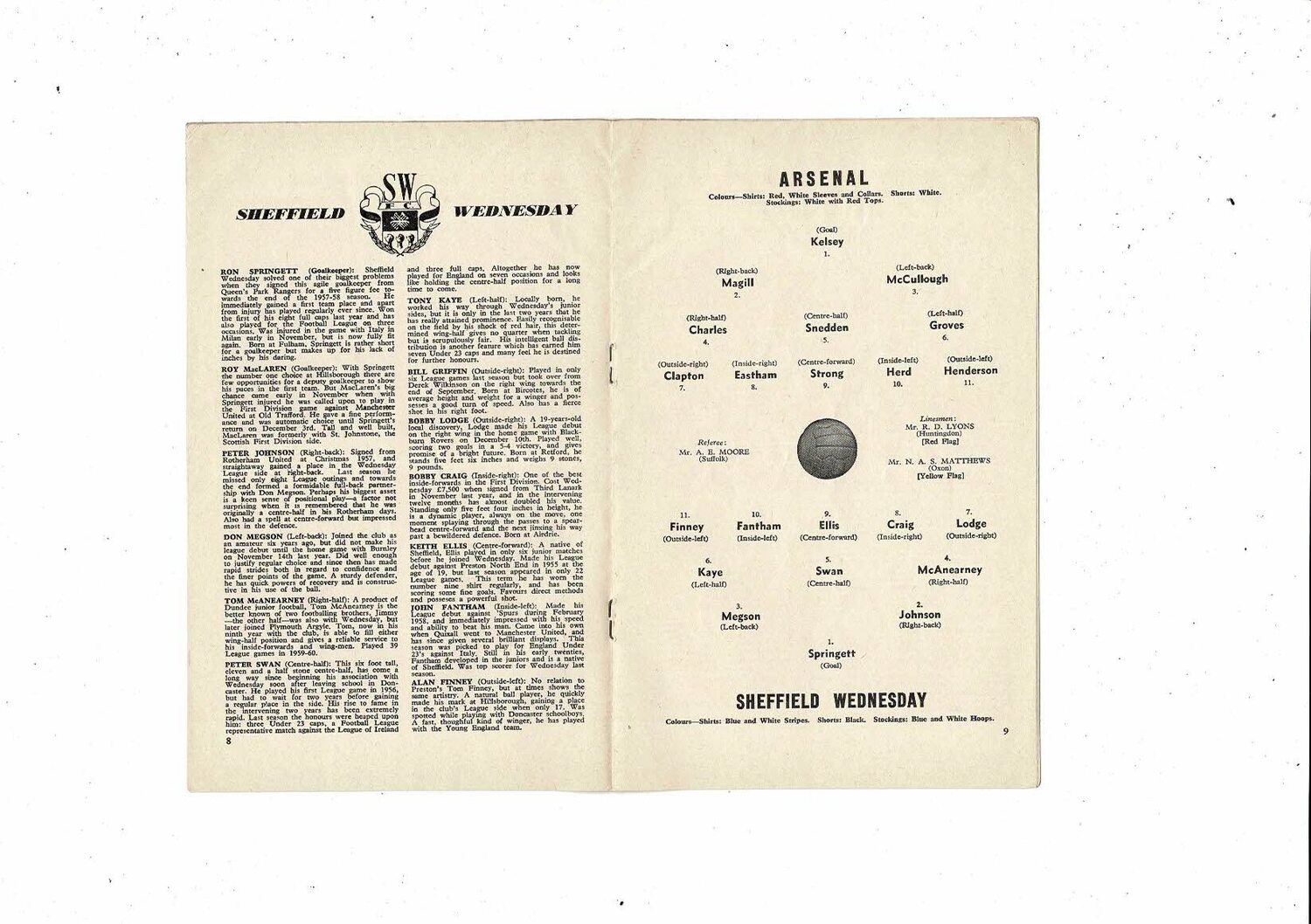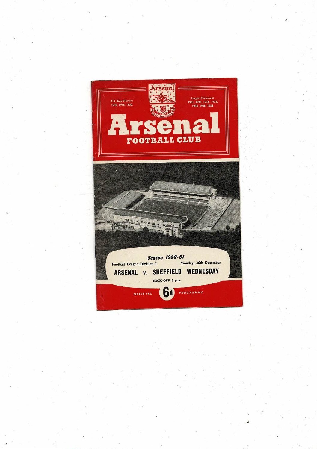 1960/61 Arsenal v Sheffield Wednesday Football Programme