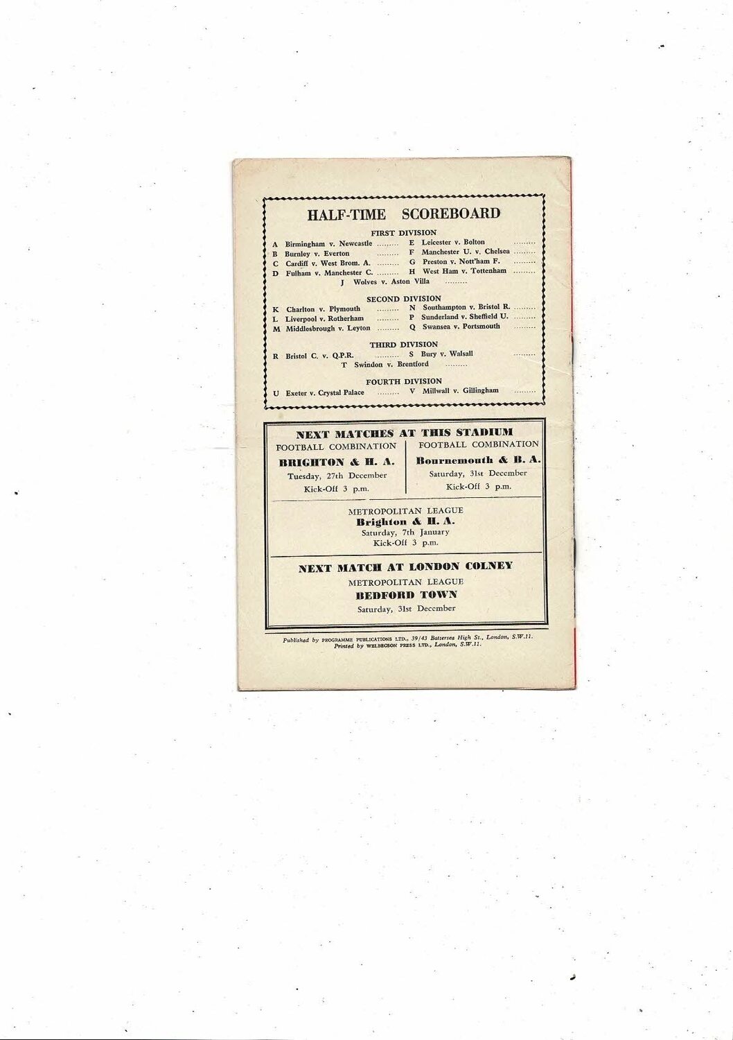 This original Football programme is creased with some minor staining & tiny nic on spine. No handwriting. Please see scans.