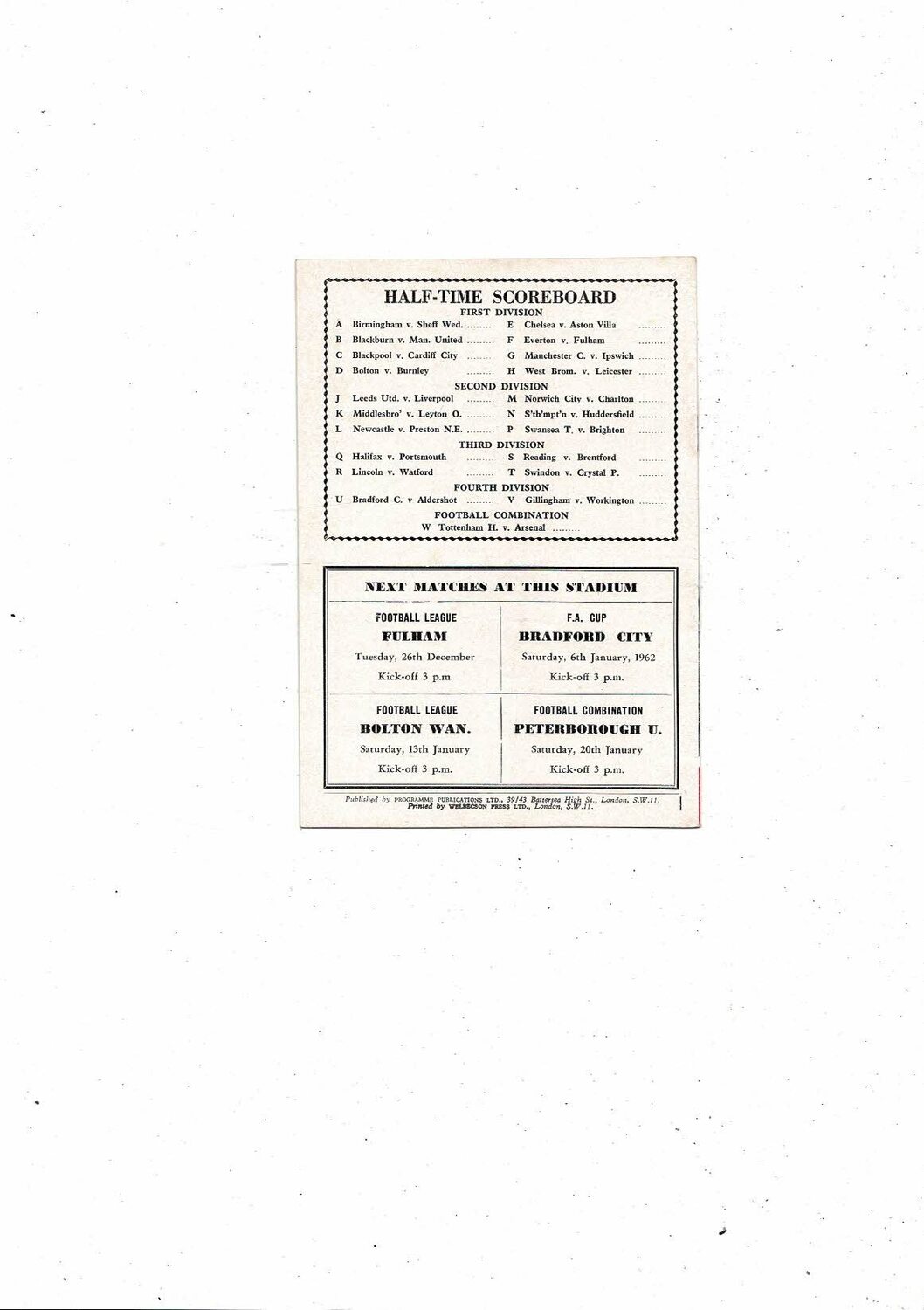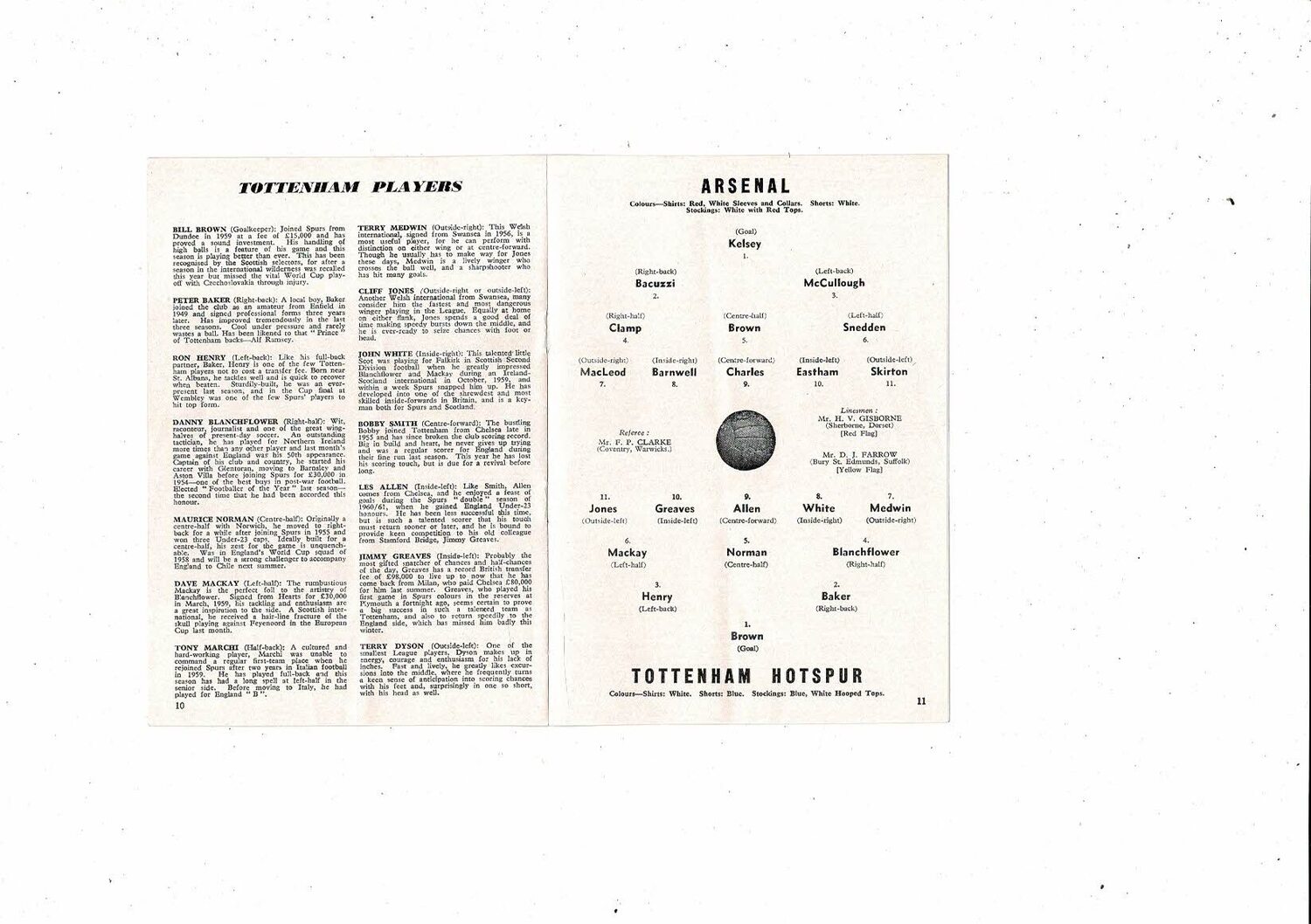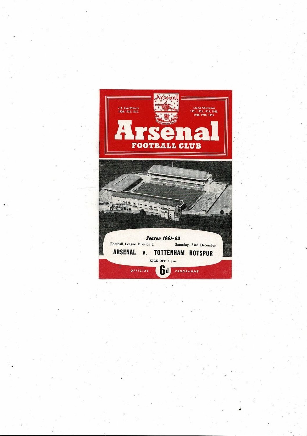1961/62 Arsenal v Tottenham Hotspur Football Programme