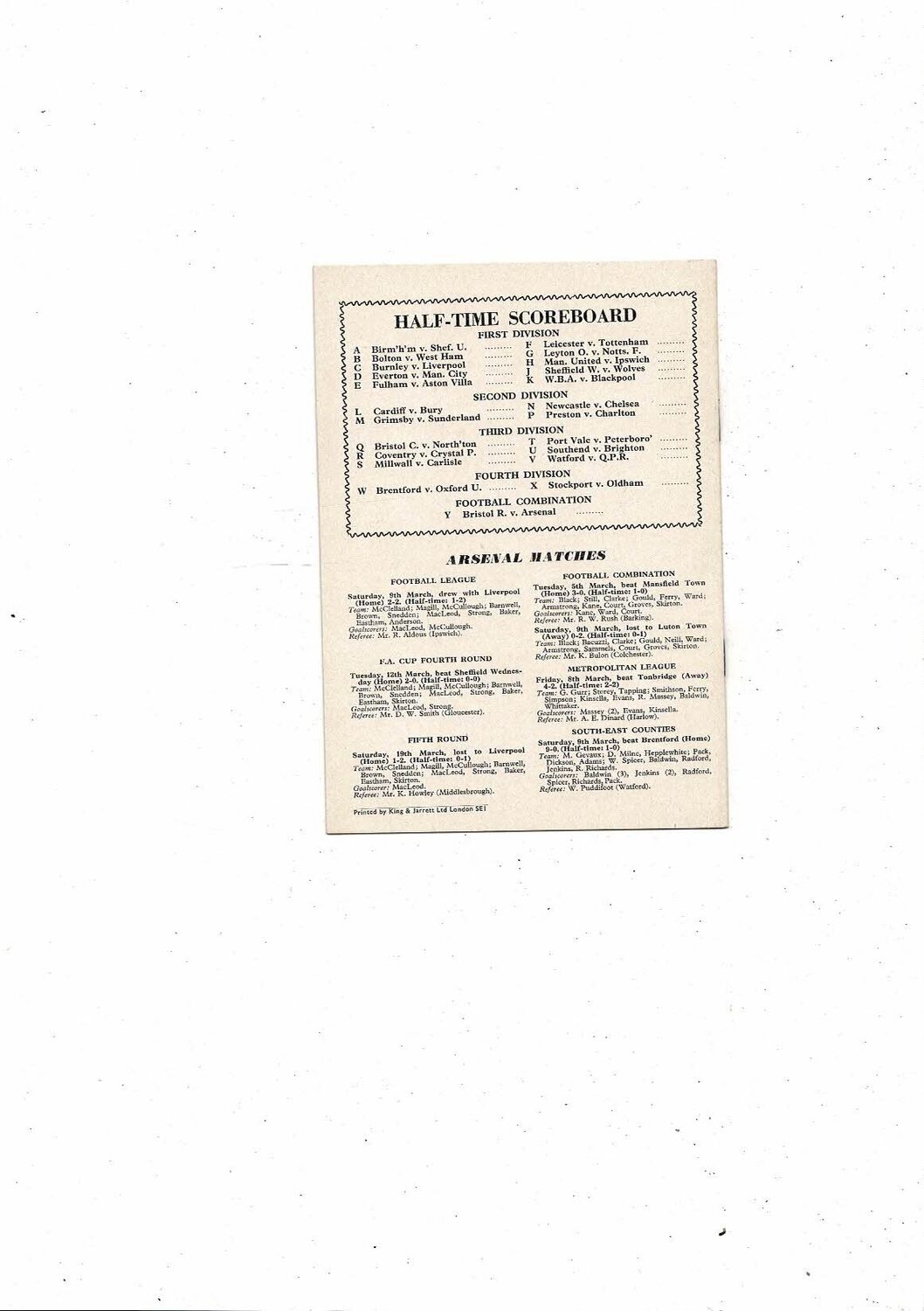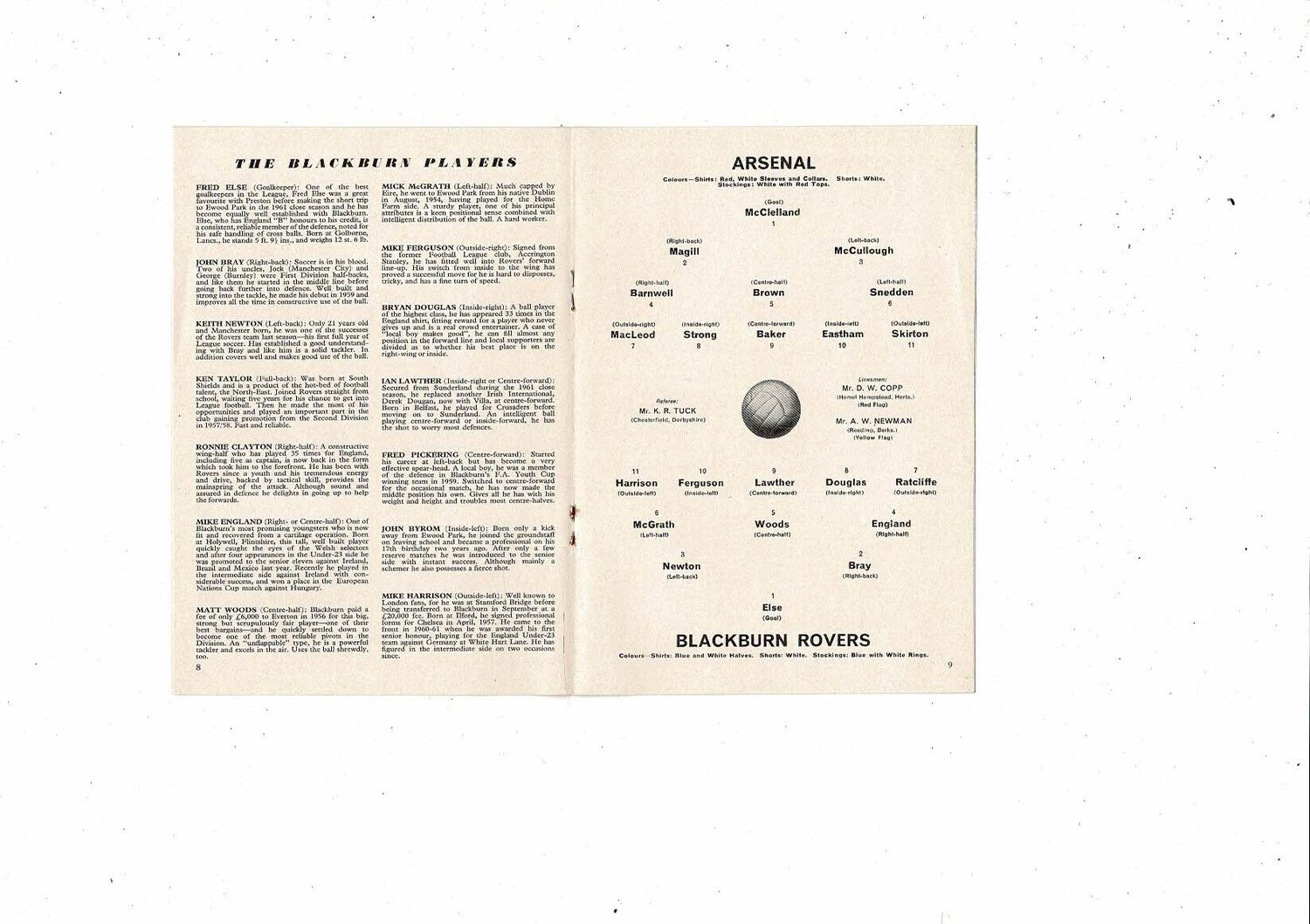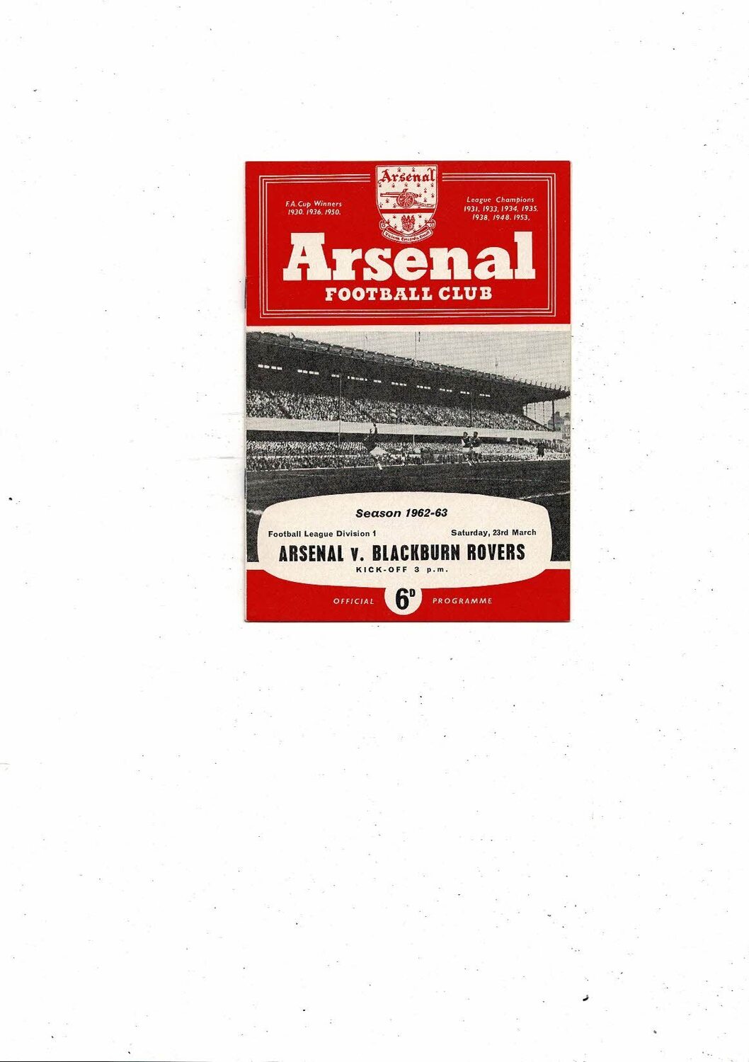 1962/63 Arsenal v Blackburn Rovers Football Programme