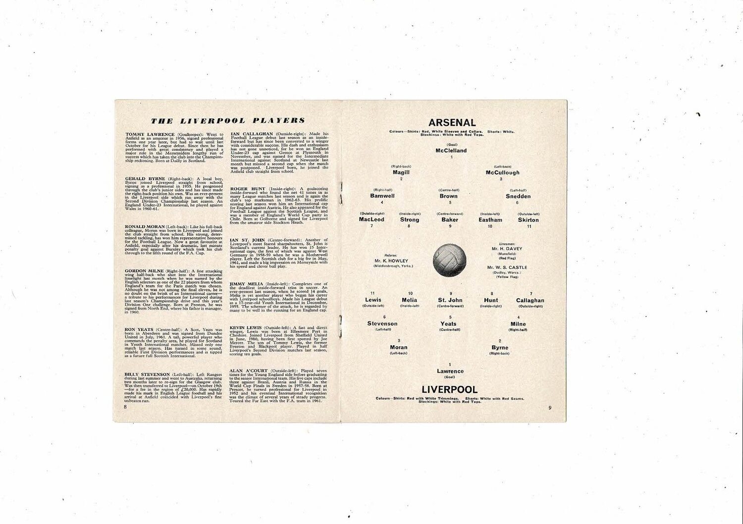 1962/63 Arsenal v Liverpool FA Cup Football Programme