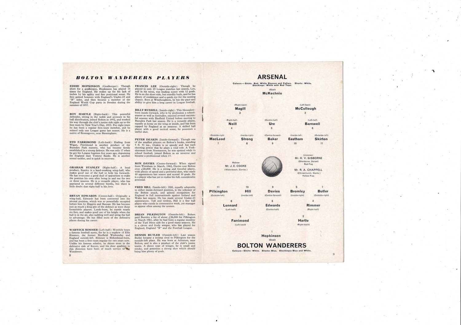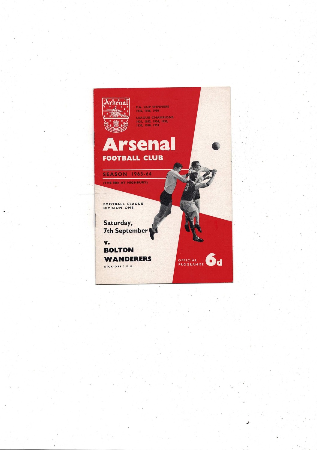 1963/64 Arsenal v Bolton Wanderers Football Programme + Press cutting