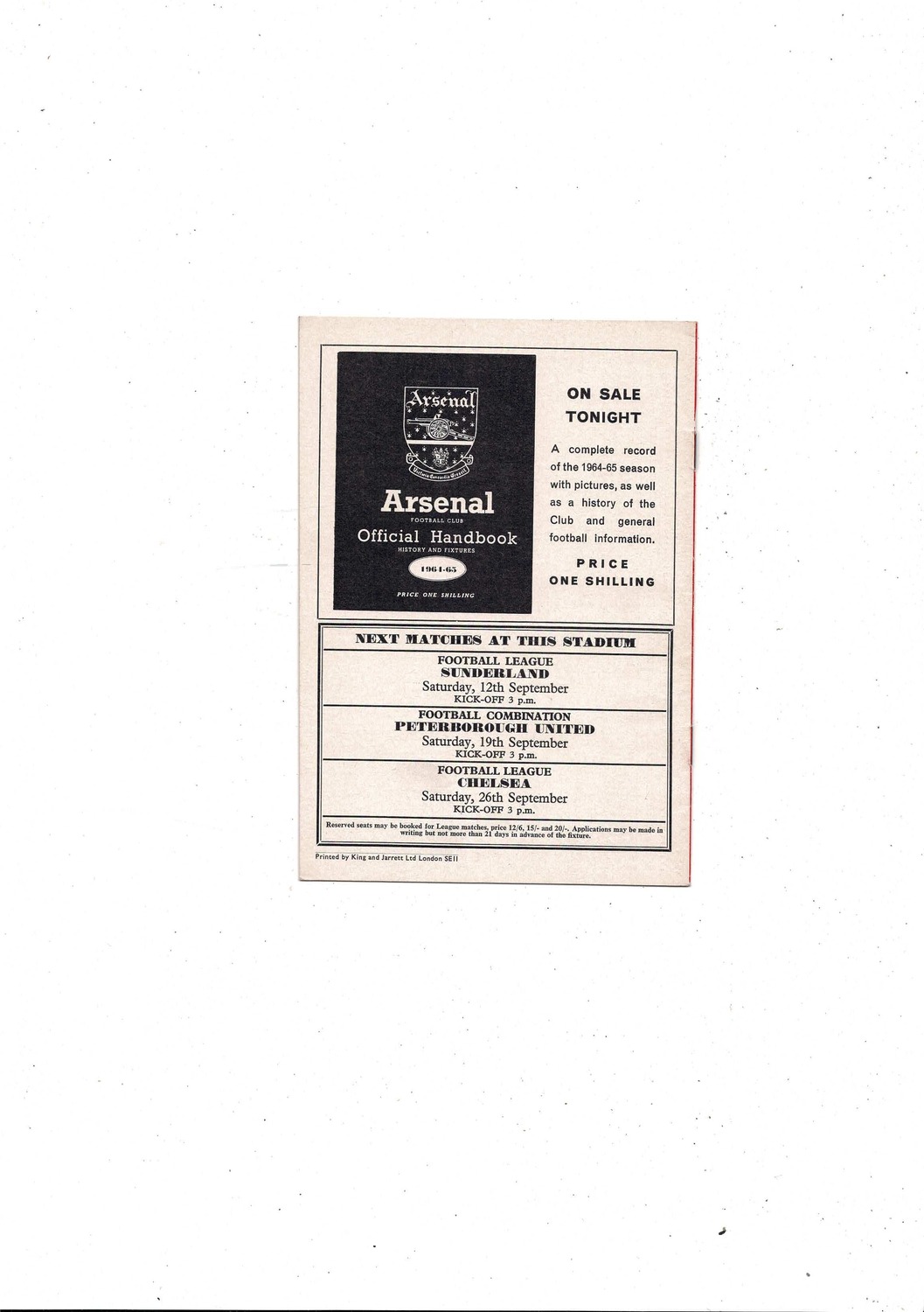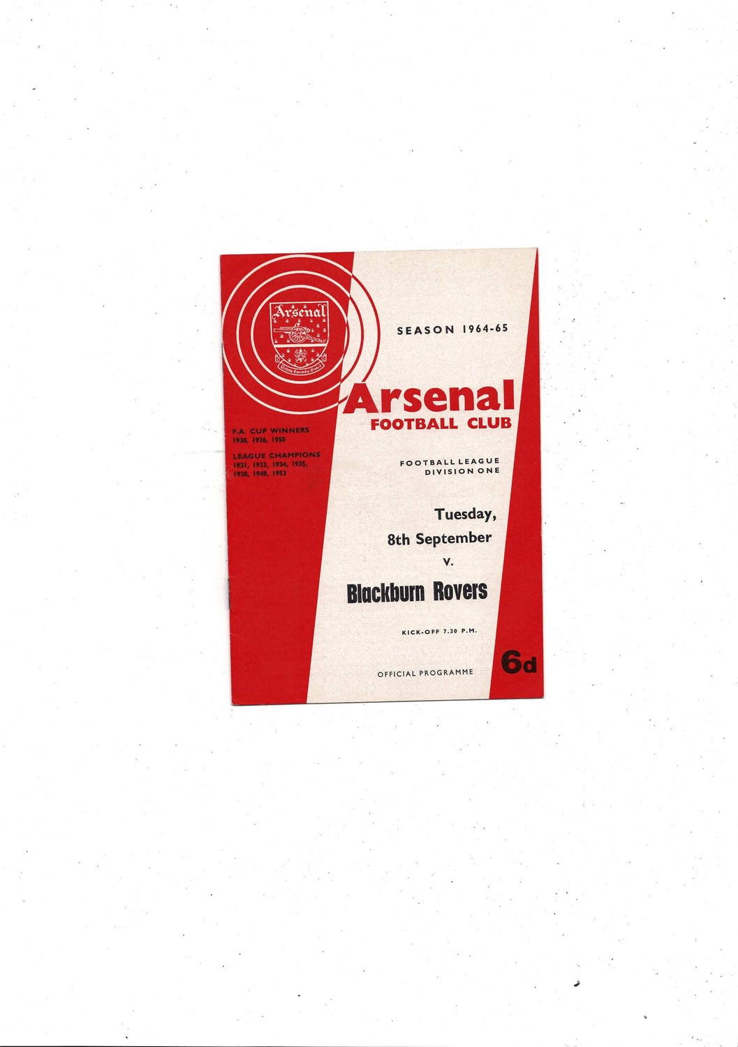 1964/65 Arsenal v Blackburn Rovers Football Programme