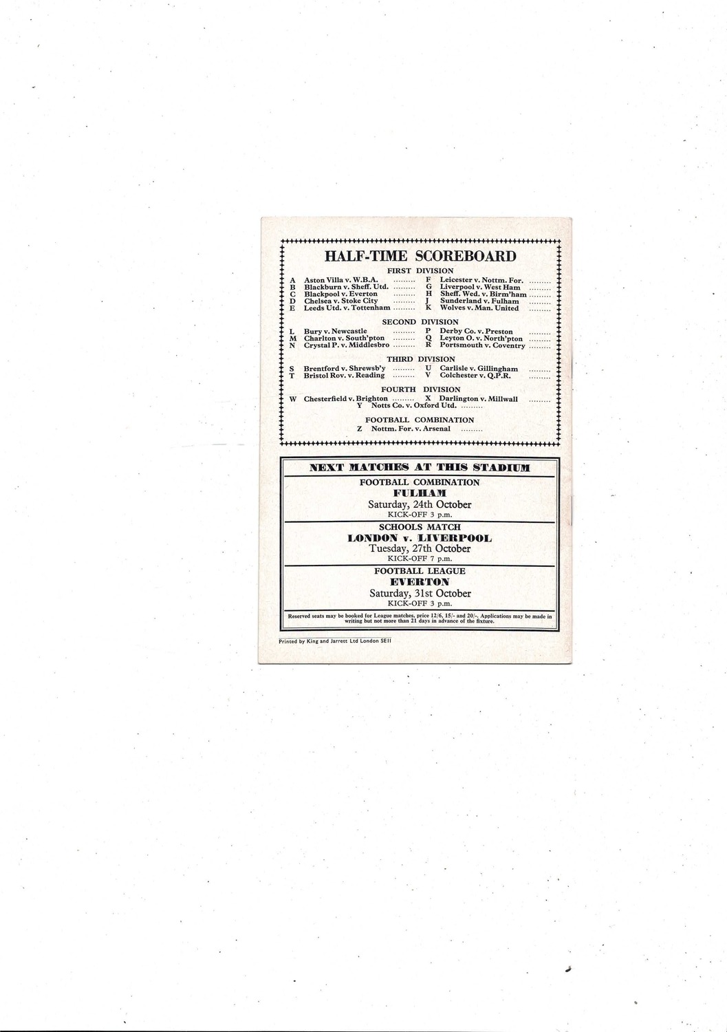 This original Football Programme is slightly creased with some very minor staining. No handwriting. Please see scans.