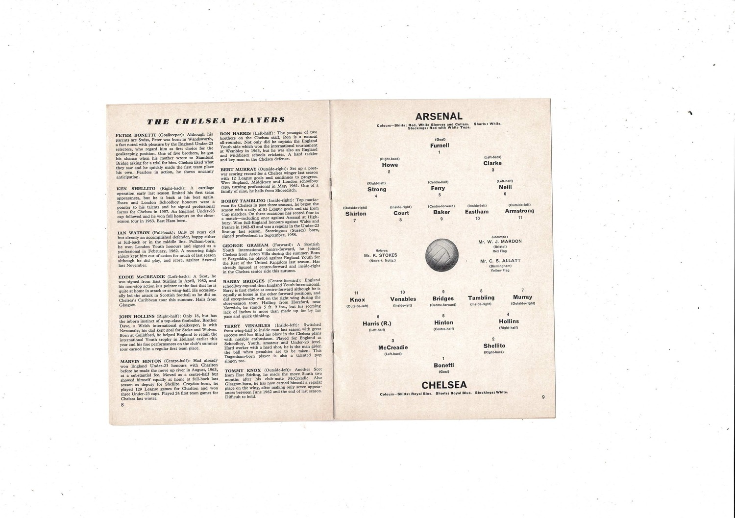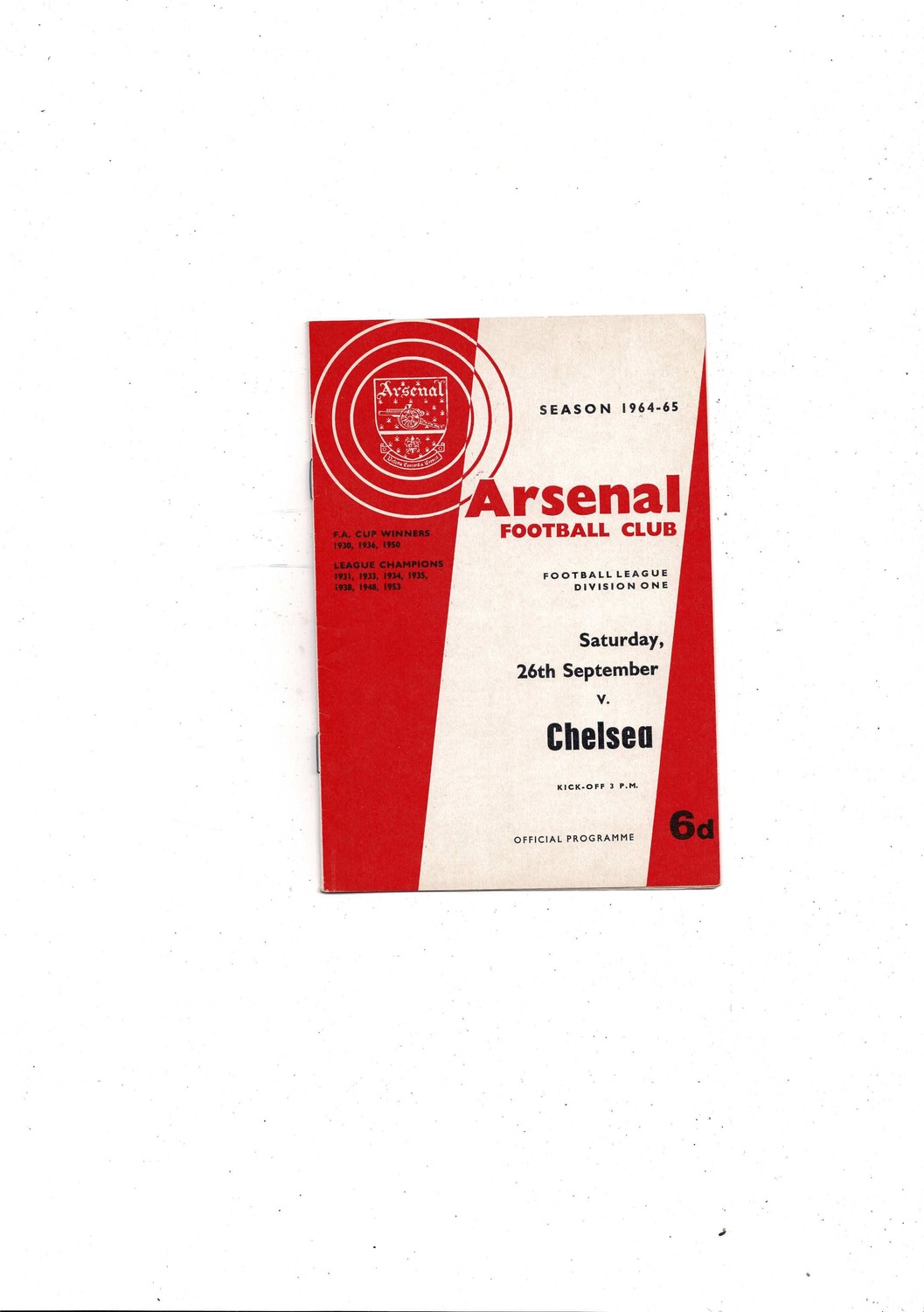 1964/65 Arsenal v Chelsea Football Programme