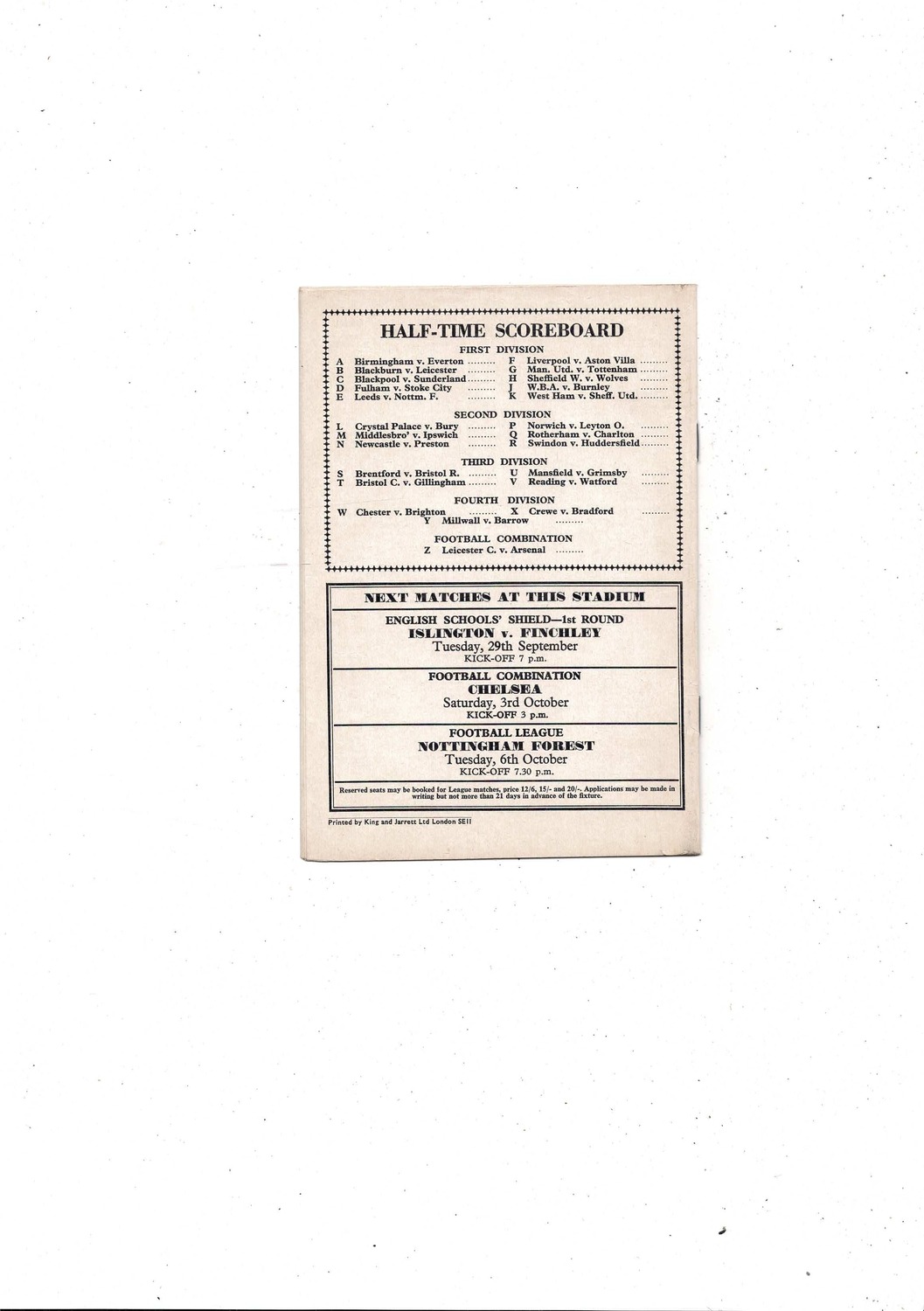This Original Football Programme is creased. No handwriting. Please see scans.