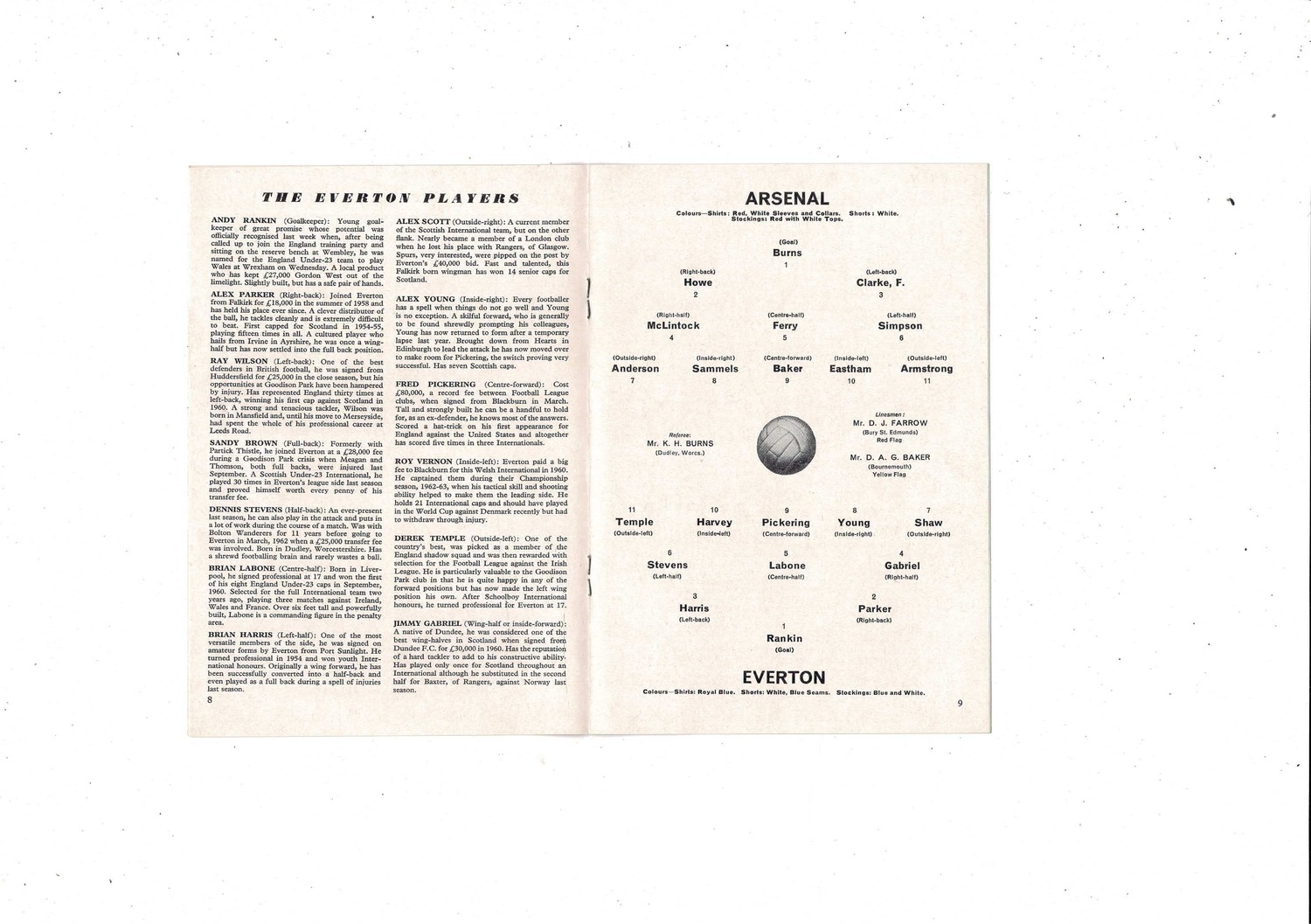 1964/65 Arsenal v Everton Football Programme + press cuttings