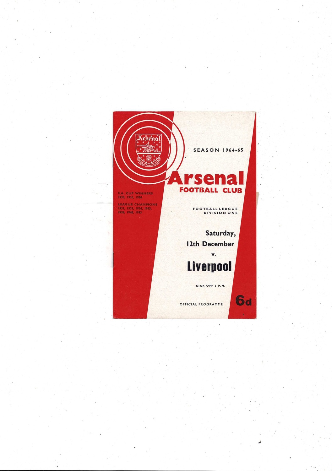 1964/65 Arsenal v Liverpool Football Programme + Press cutting