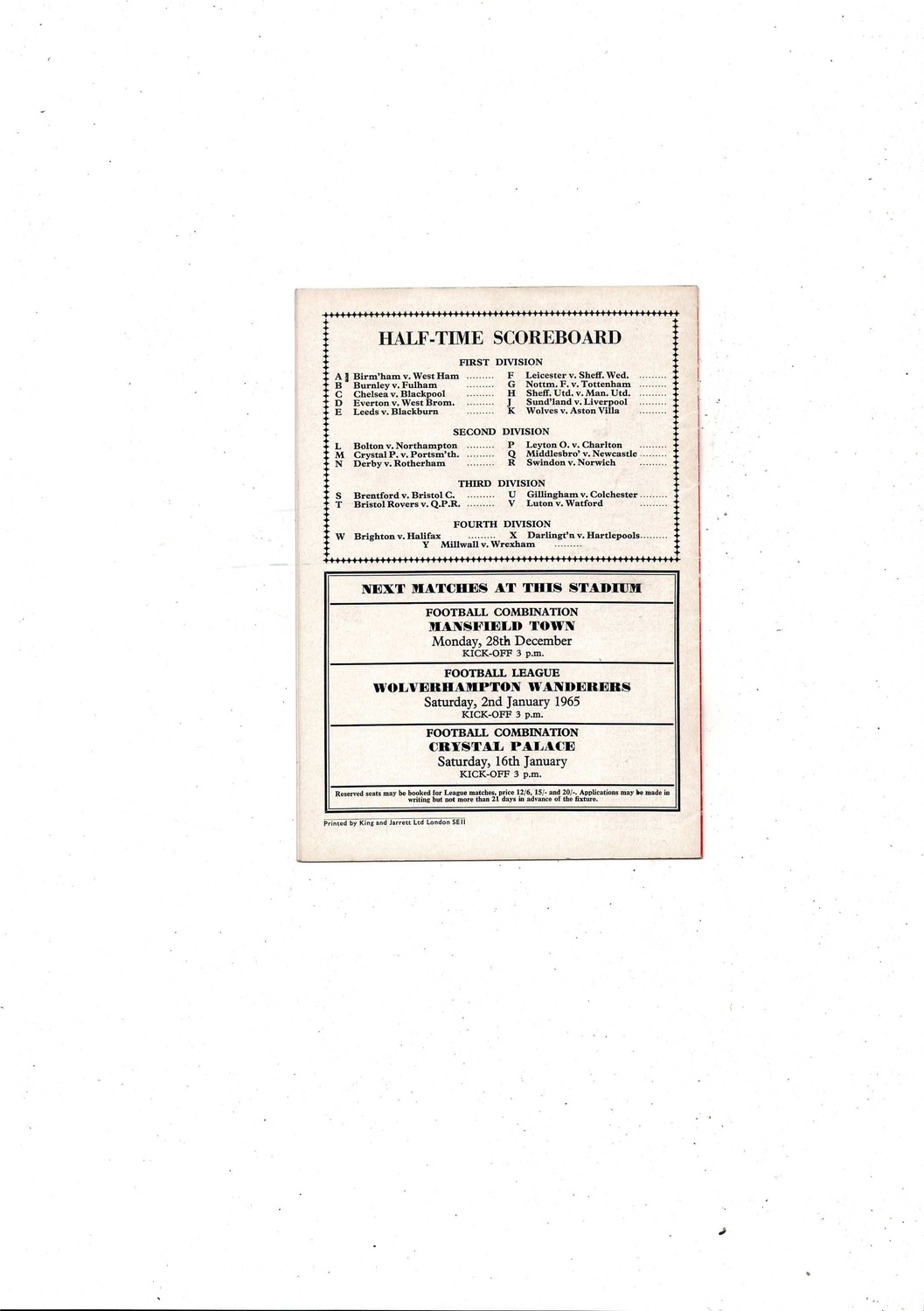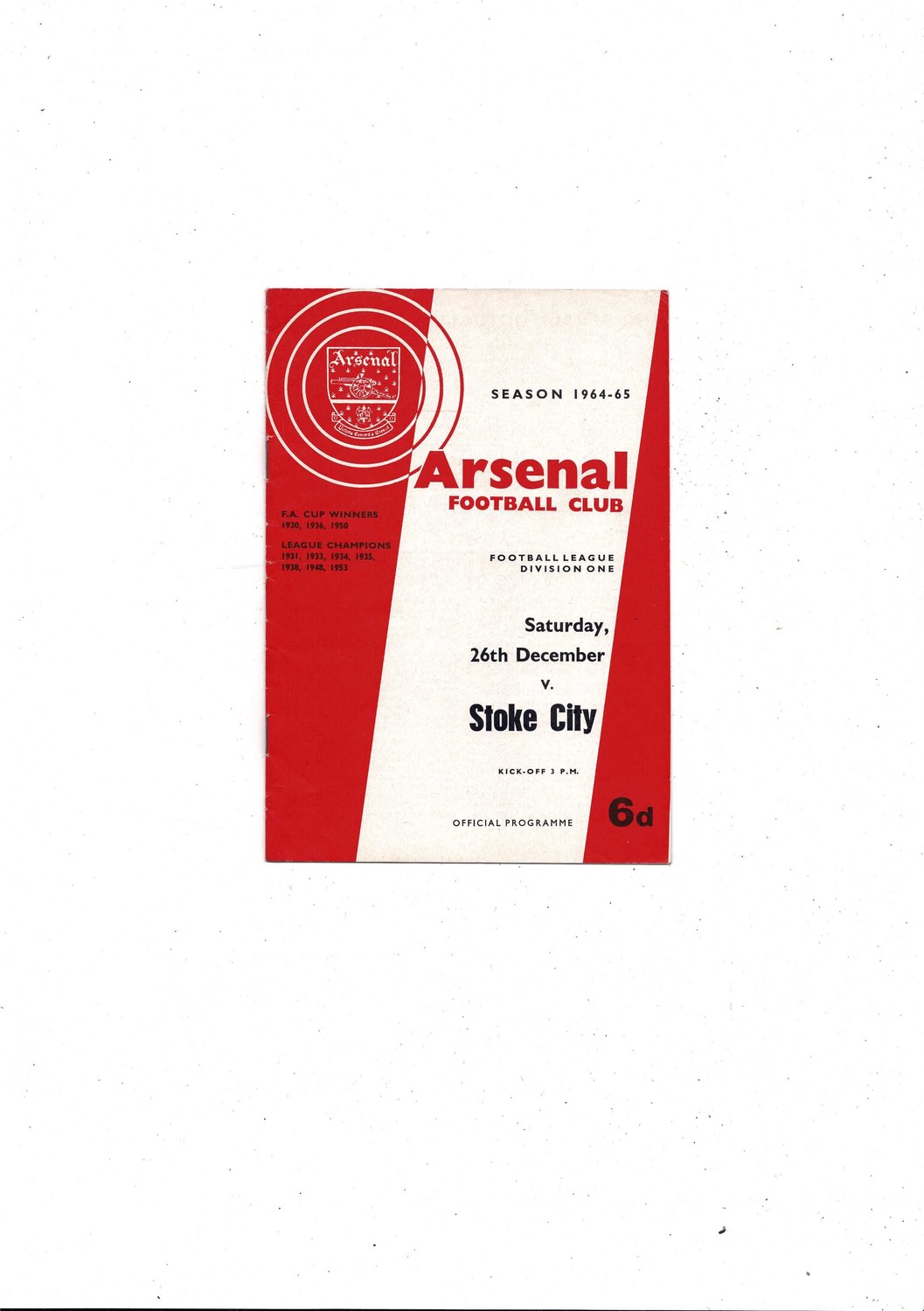 1964/65 Arsenal v Stoke City Football Programme