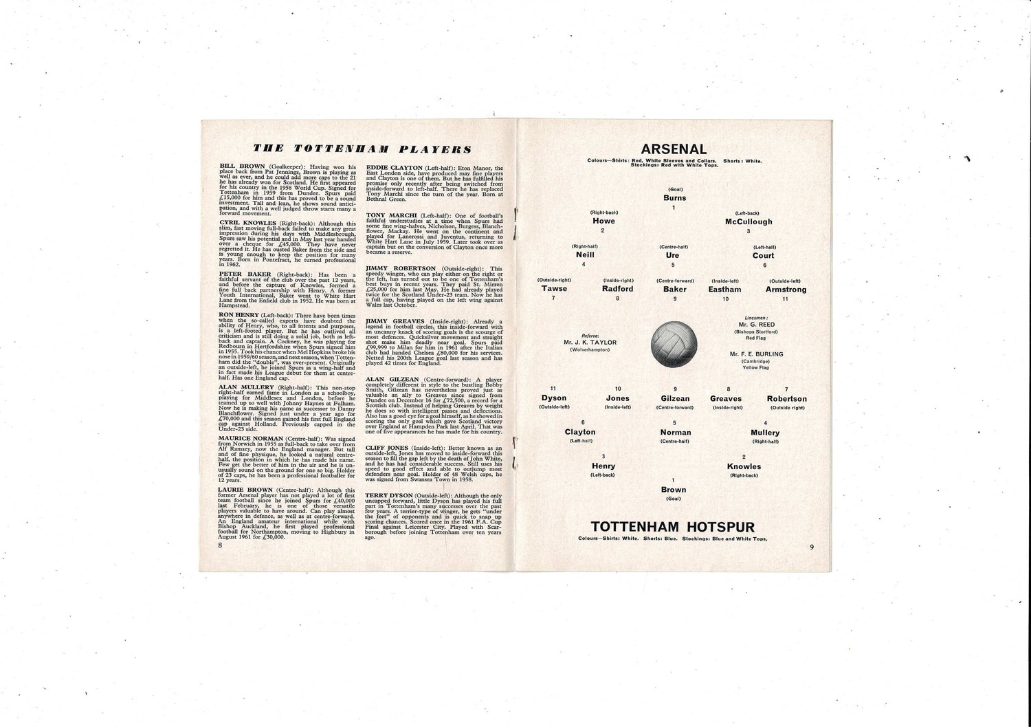 1964/65 Arsenal v Tottenham Hotspur Football Programme