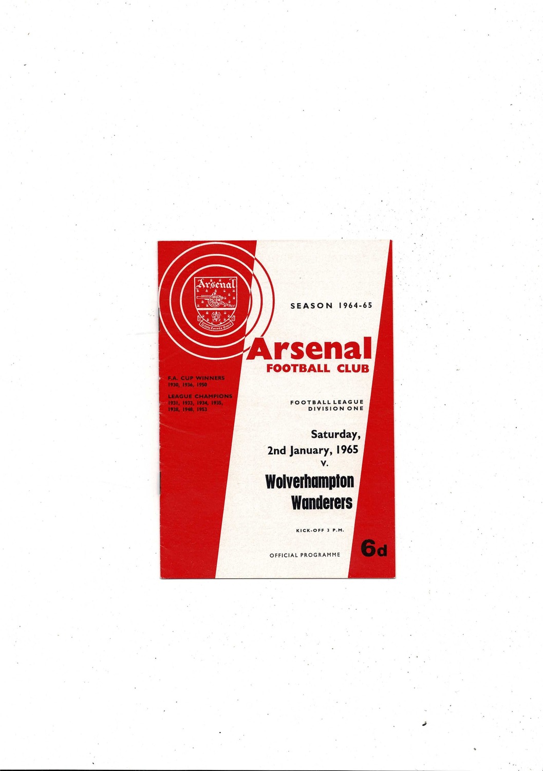 1964/65 Arsenal v Wolves Football Programme + press cuttings