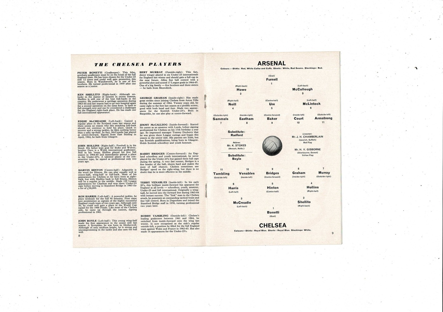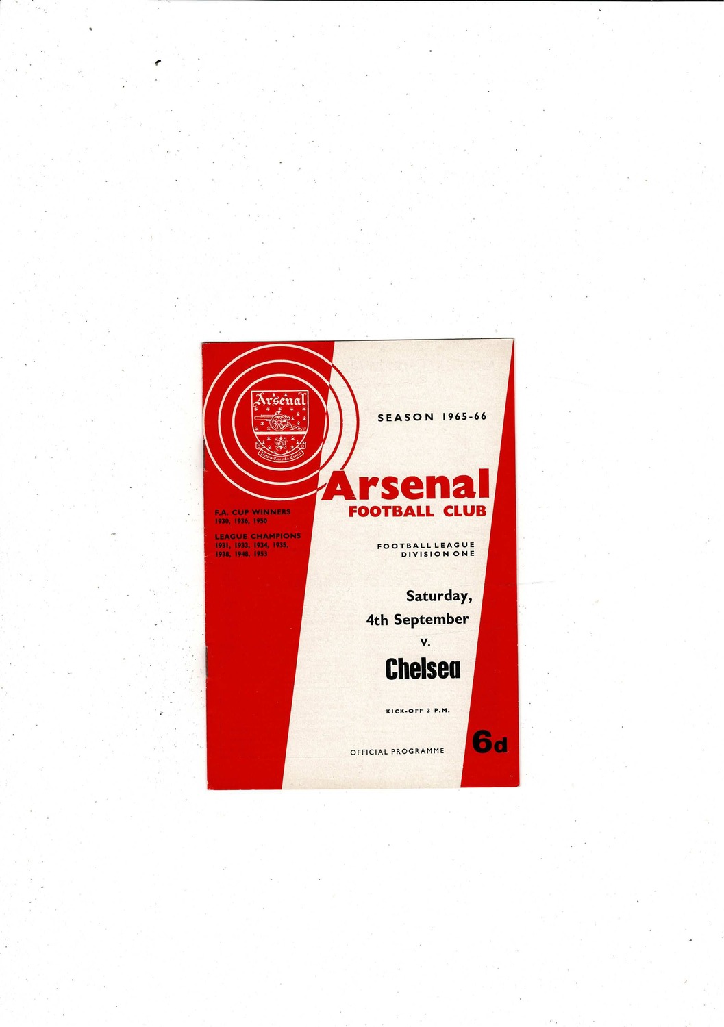 1965/66 Arsenal v Chelsea Football Programme