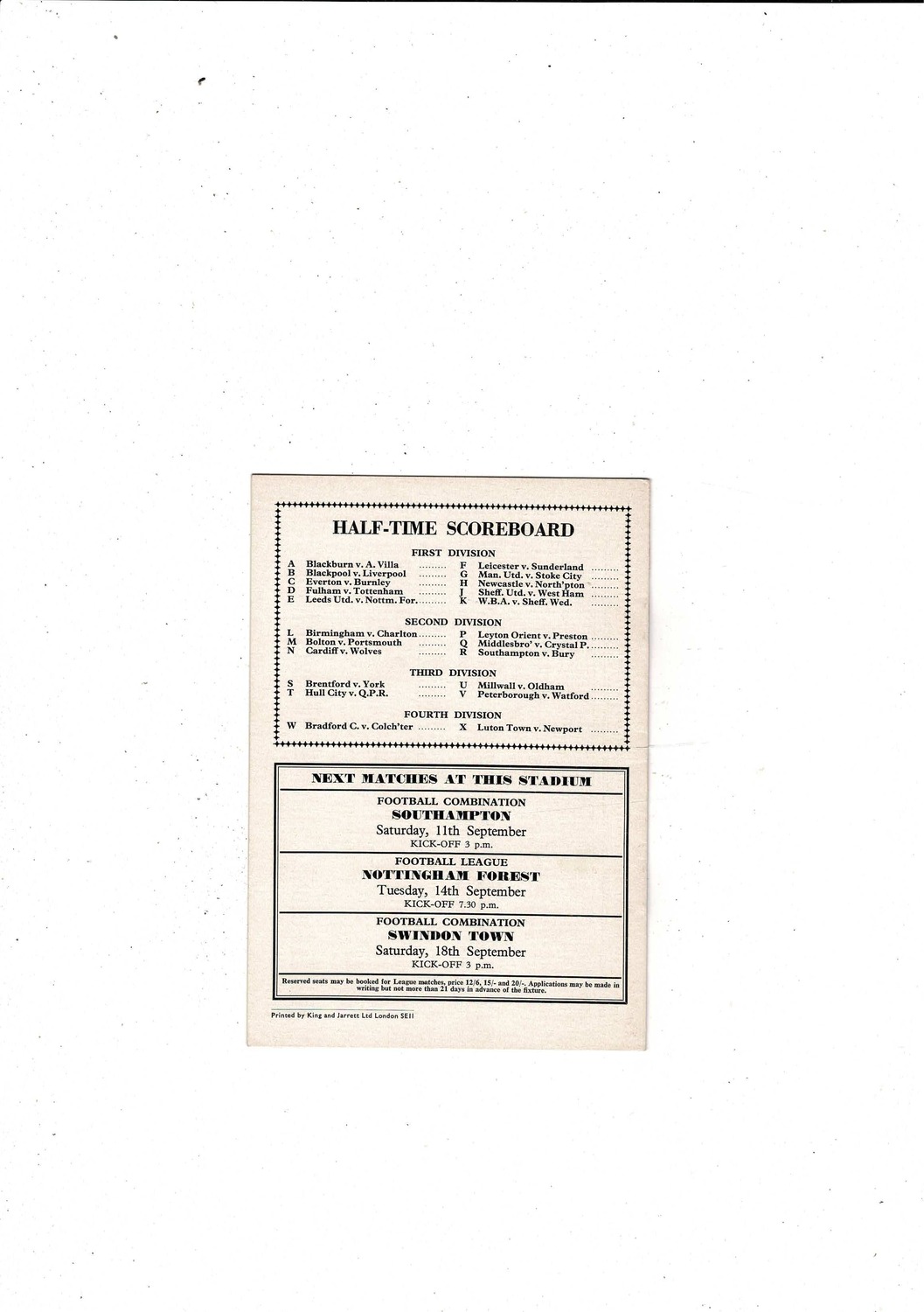 This Original Football Programme is slightly creased with some minor staining. No handwriting. Please see scans.