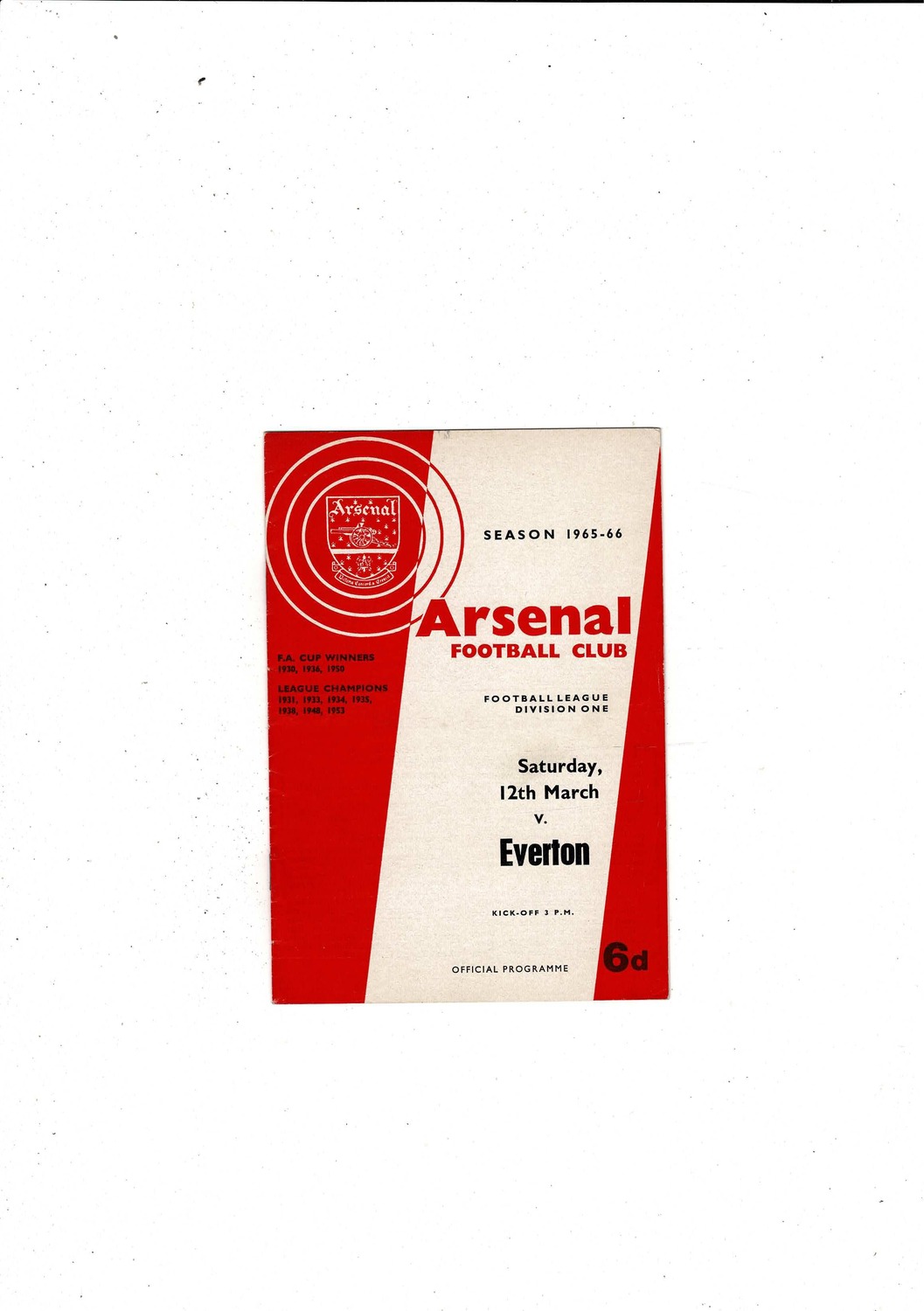 1965/66 Arsenal v Everton Football Programme