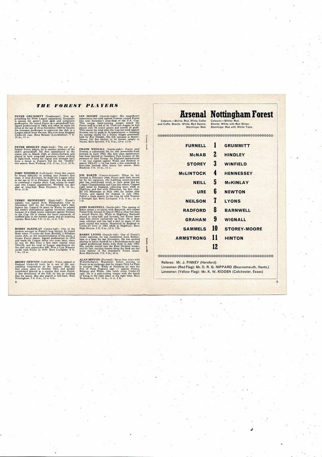 1966/67 Arsenal v Nottingham Forest Football Programme