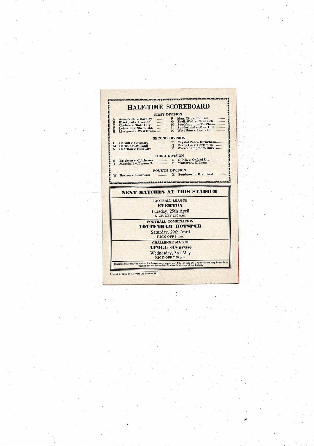 This original Football Programme is slightly creased with a light fold & one staple just starting to rust. No handwriting. Please see scans.