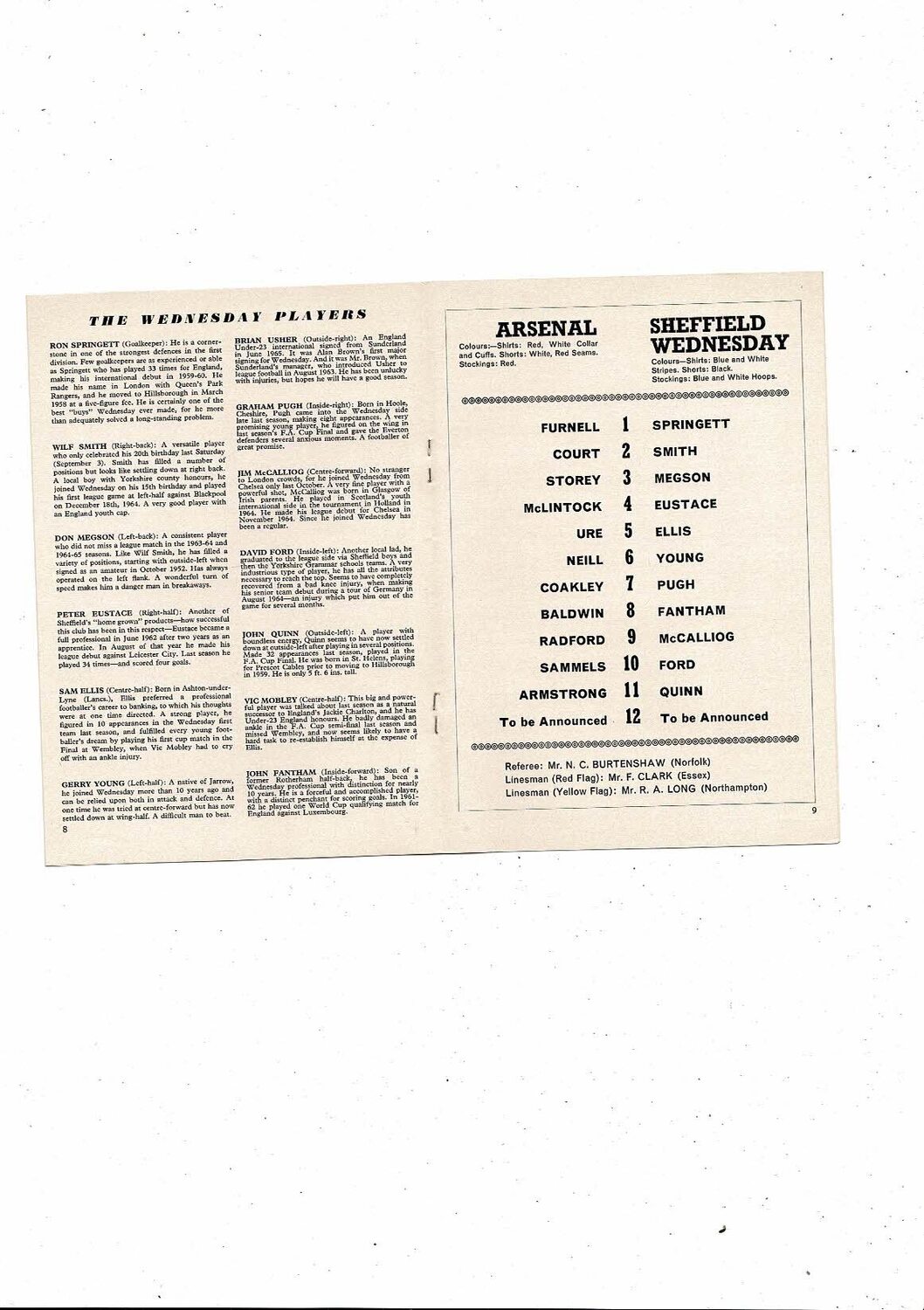 1966/67 Arsenal v Sheffield Wednesday Football Programme
