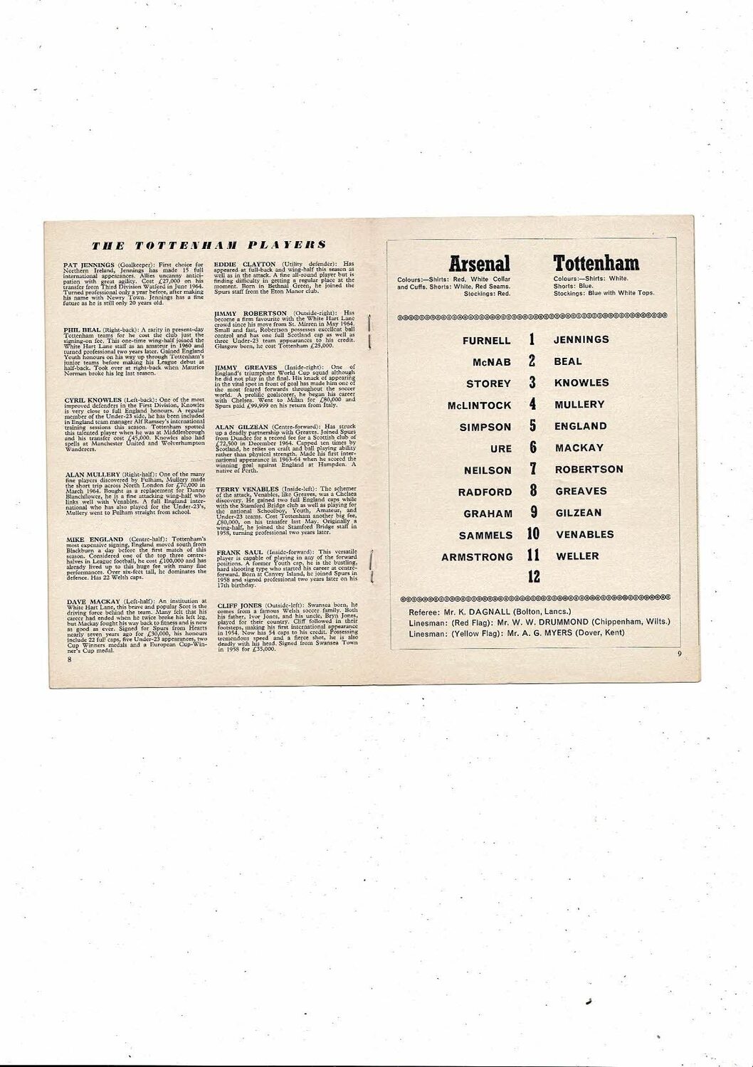 1966/67 Arsenal v Tottenham Hotspur Football Programme