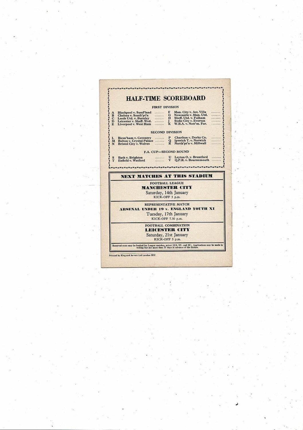 This original Football Programme is creased also has a light fold with some minor staining. No handwriting. Please see scans.