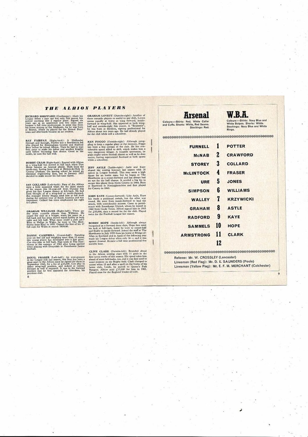 1966/67 Arsenal v West Bromwich Albion Football Programme
