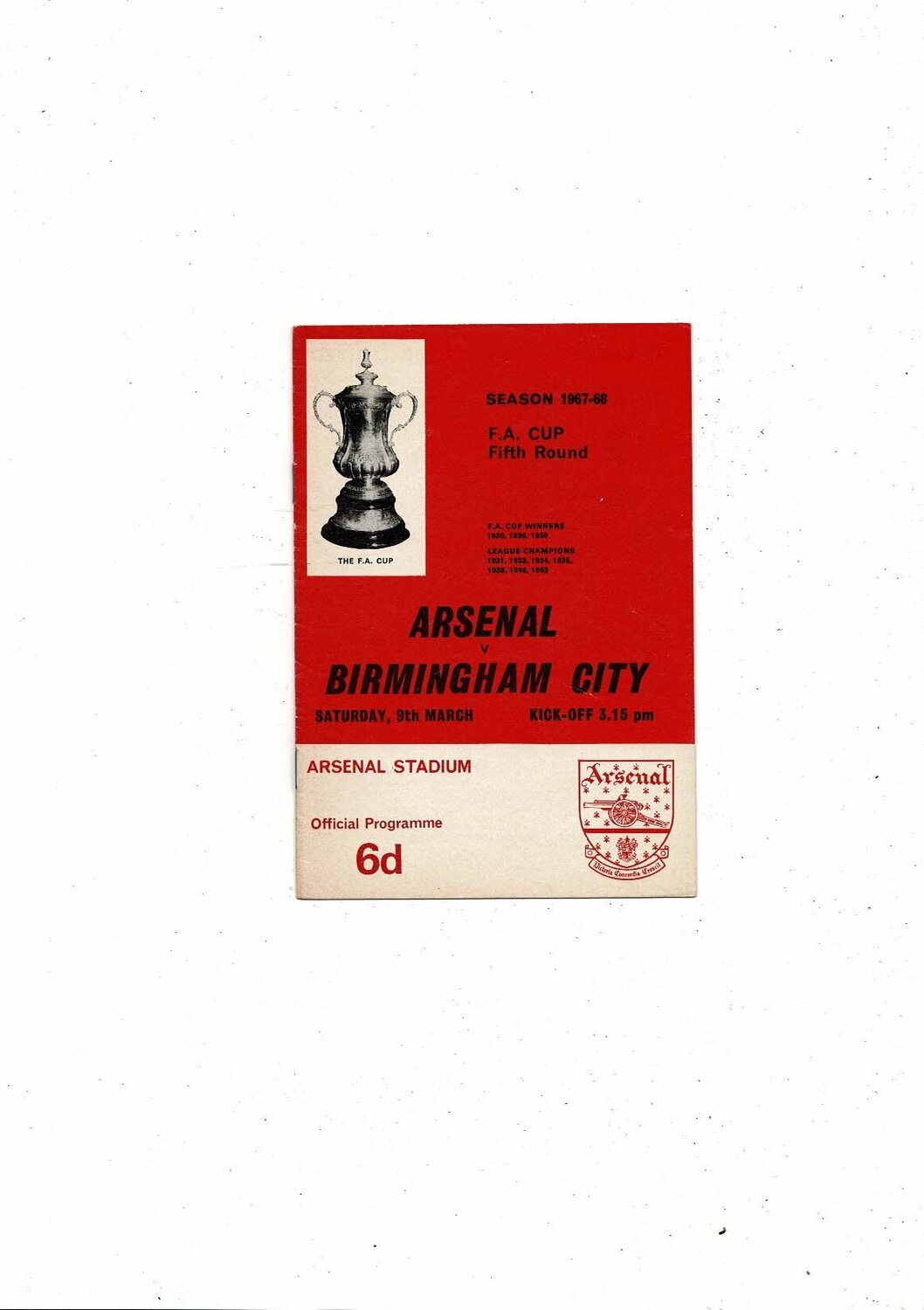 1967/68 Arsenal v Birmingham City FA Cup Football Programme